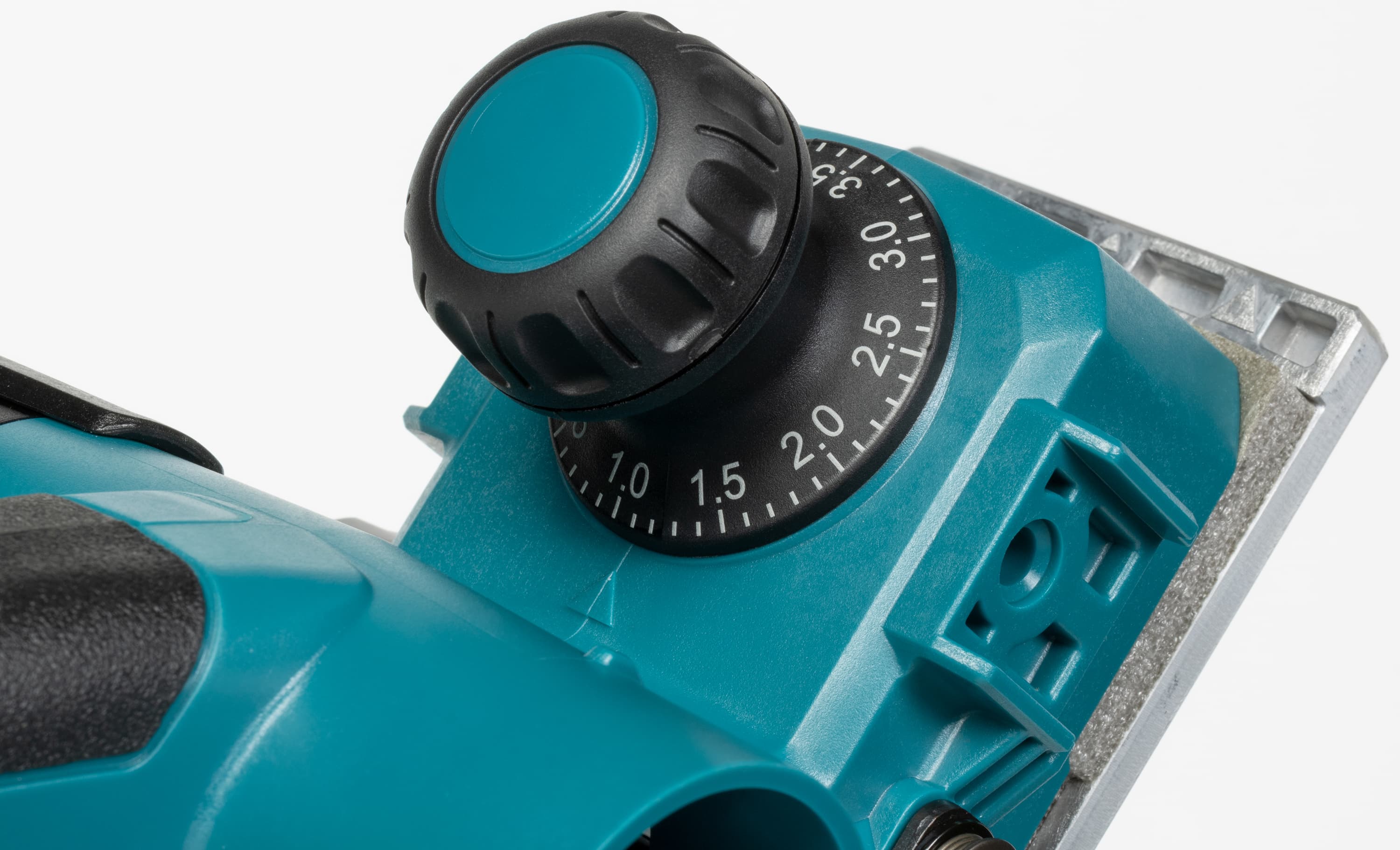 Производитель не рекомендует менять глубину строгания в процессе работы, это особо подчеркивается в руководстве. Дескать, перед поворотом рукоятки глубины необходимо остановить двигатель. Неясно, почему. Возможно, при недостатке опыта такое делать и нежелательно, но для практикующего пользователя изменение глубины непосредственно во время работы — это вполне привычно и естественно.