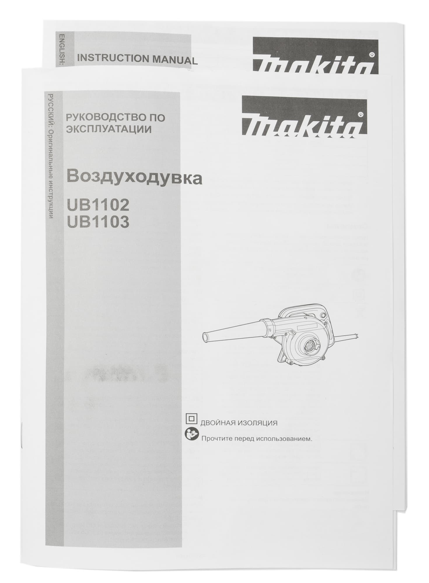 Многофункциональное устройство воздуходувка/пылесос Makita UB1103 было доставлено на тесты в картонной коробке, оформленной в фирменной стилистике Makita. Благодаря привычной зелено-голубой цветовой гамме продукцию компании легко узнать не только на полках магазинов, но и в режиме реальной эксплуатации. Стоит только бросить беглый взгляд.