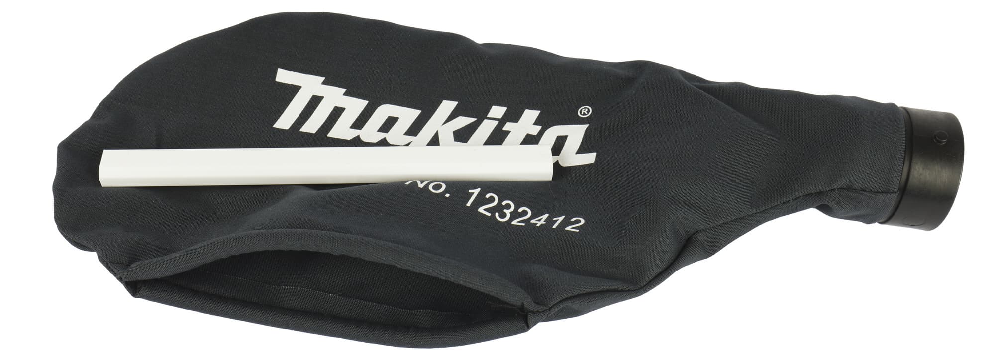 Для отсоса пыли нужно установить патрубок на всасывающее отверстие, а мешок для сбора пыли — на выходное отверстие воздуходувки, зафиксировав их поворотом до щелчка.