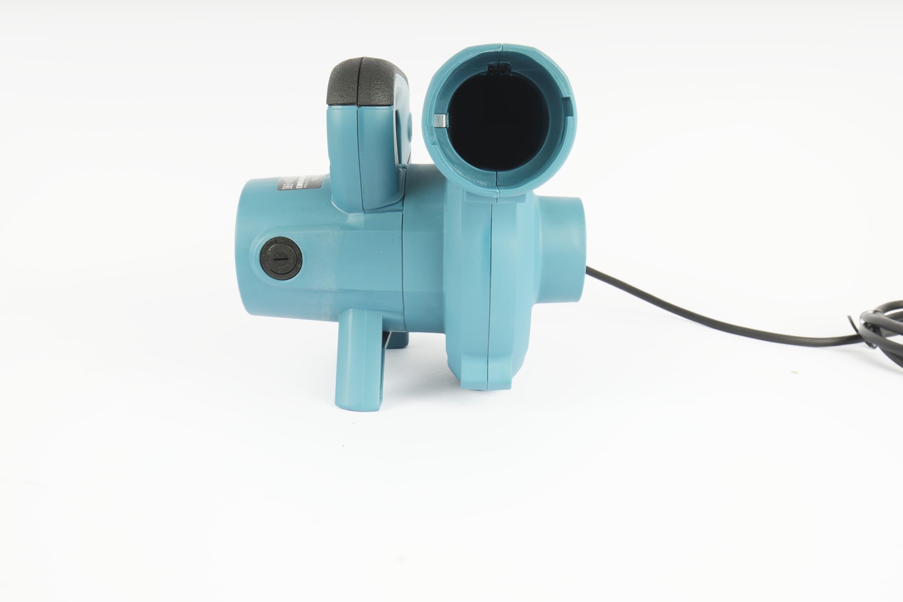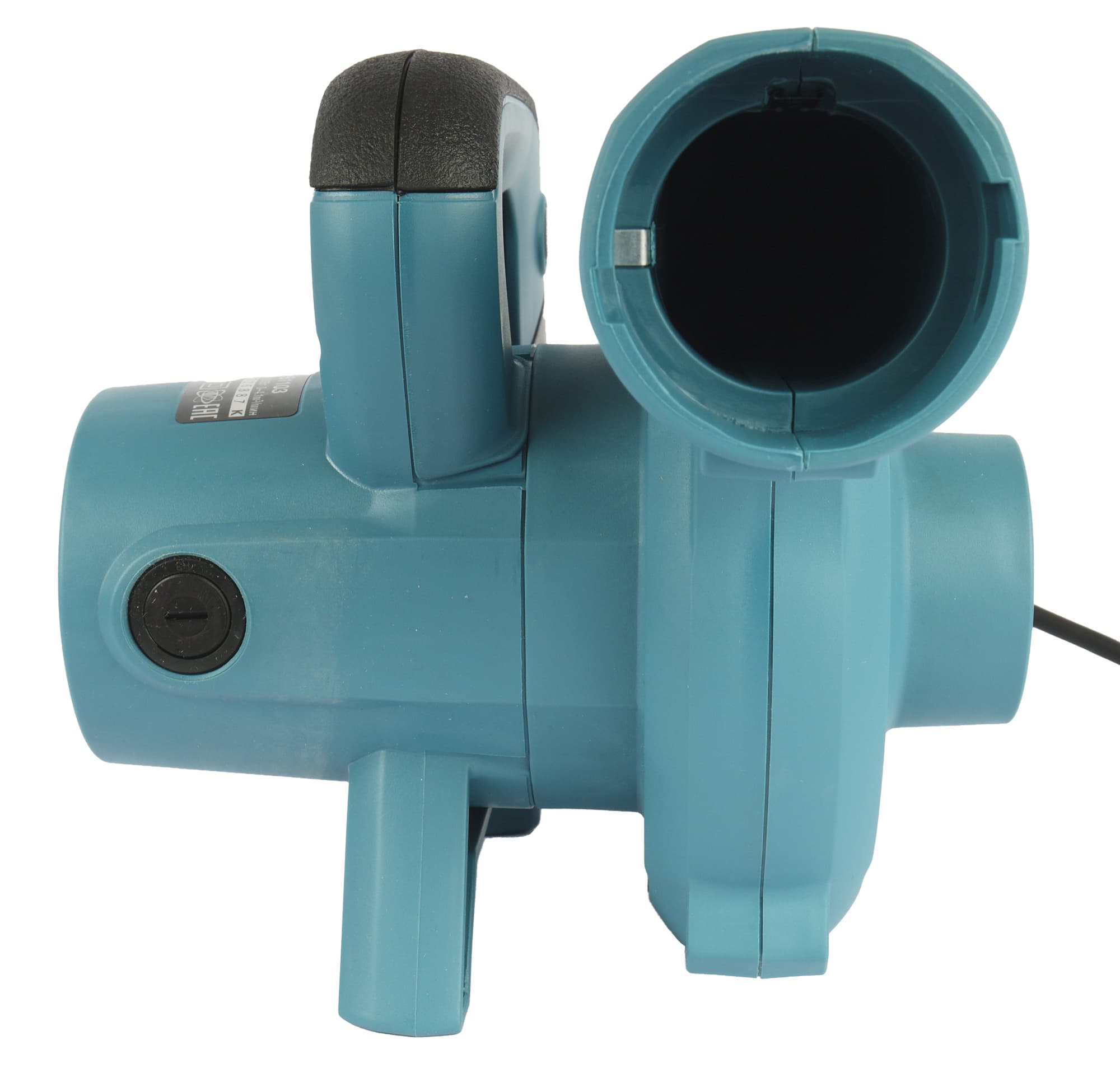 Конструкция проста. Внутри корпуса расположен мотор, который засасывает воздух внутрь корпуса и выпускает его через сопло воздуходувки. Засасывающее отверстие находится сбоку и имеет круглое сечение.