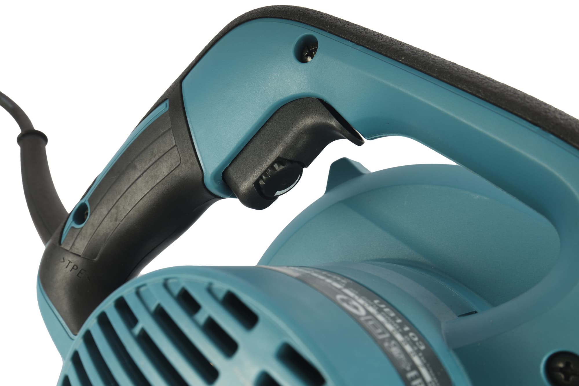 У ручки имеется «пистолетный» курковый переключатель, с помощью которого осуществляется плавная регулировка скорости работы устройства. На переключателе также имеется колесико, с помощью которого можно ограничить максимальную скорость (очень удобно в случае, когда особенно сильный воздушный поток не нужен).