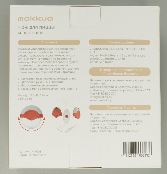 | Тип | кухонный нож для пиццы, теста и выпечки |