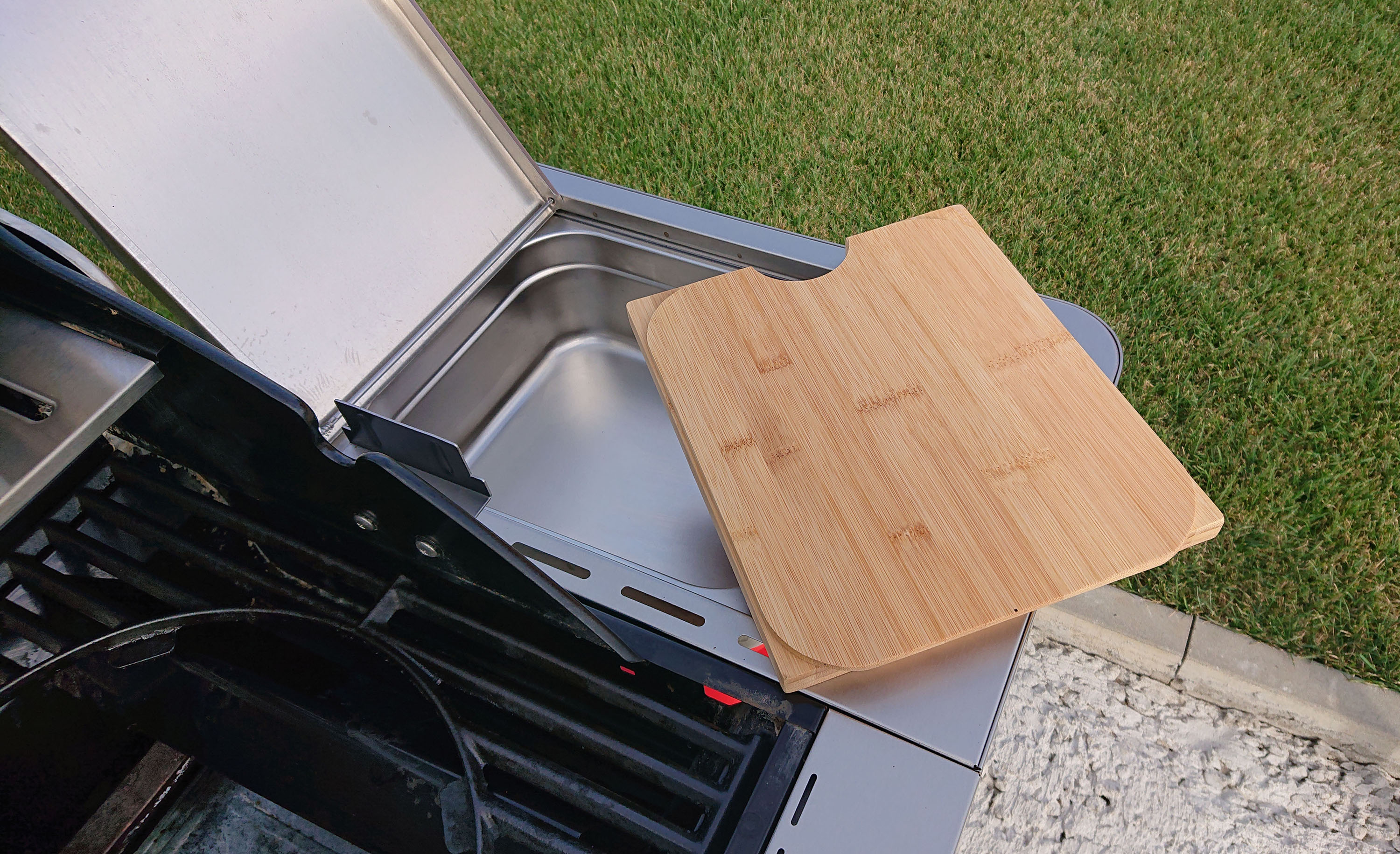 С правой стороны гриля предусмотрено место для контейнера из нержавеющей стали с разделочной доской.