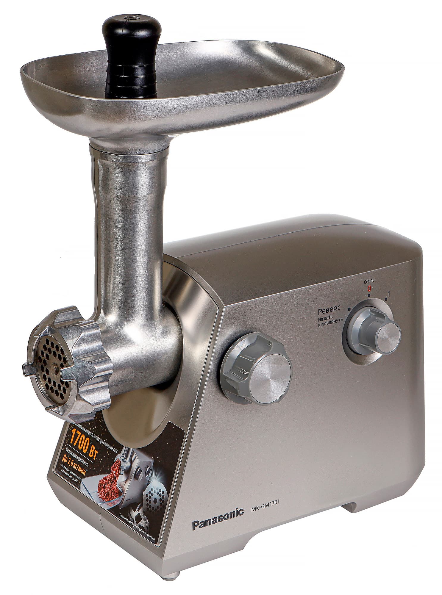 Panasonic MK-GM1701 была выпущена в продажу в конце января 2019 года. Основная ее «фишка» заключается в ножах необычной формы. По заявлению производителя, ножи изготовлены на родине всемирно известных мечей, в японском городе Секи. Panasonic утверждает, что в ходе многочисленных испытаний им удалось создать оптимальную форму ножа. Прибор укомплектован двумя перфорированными решетками: одна со средним с диаметром отверстий в 4,5 мм, вторая с крупными отверстиями овальной формы 8×5 мм.