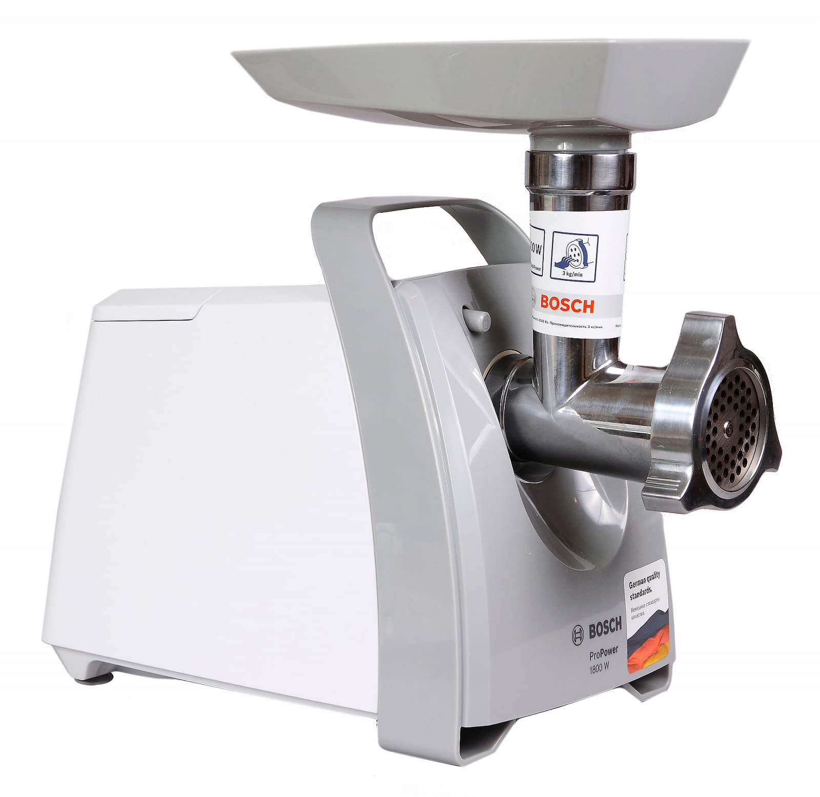 На наш взгляд, Bosch ProPower MFW66020 идеально подходит на роль «рабочей лошадки» для домашнего хозяйства с не слишком большими запросами к объемам производства фарша. Производительности в один килограмм мяса за минуту — более чем достаточно для большинства домашних задач.
