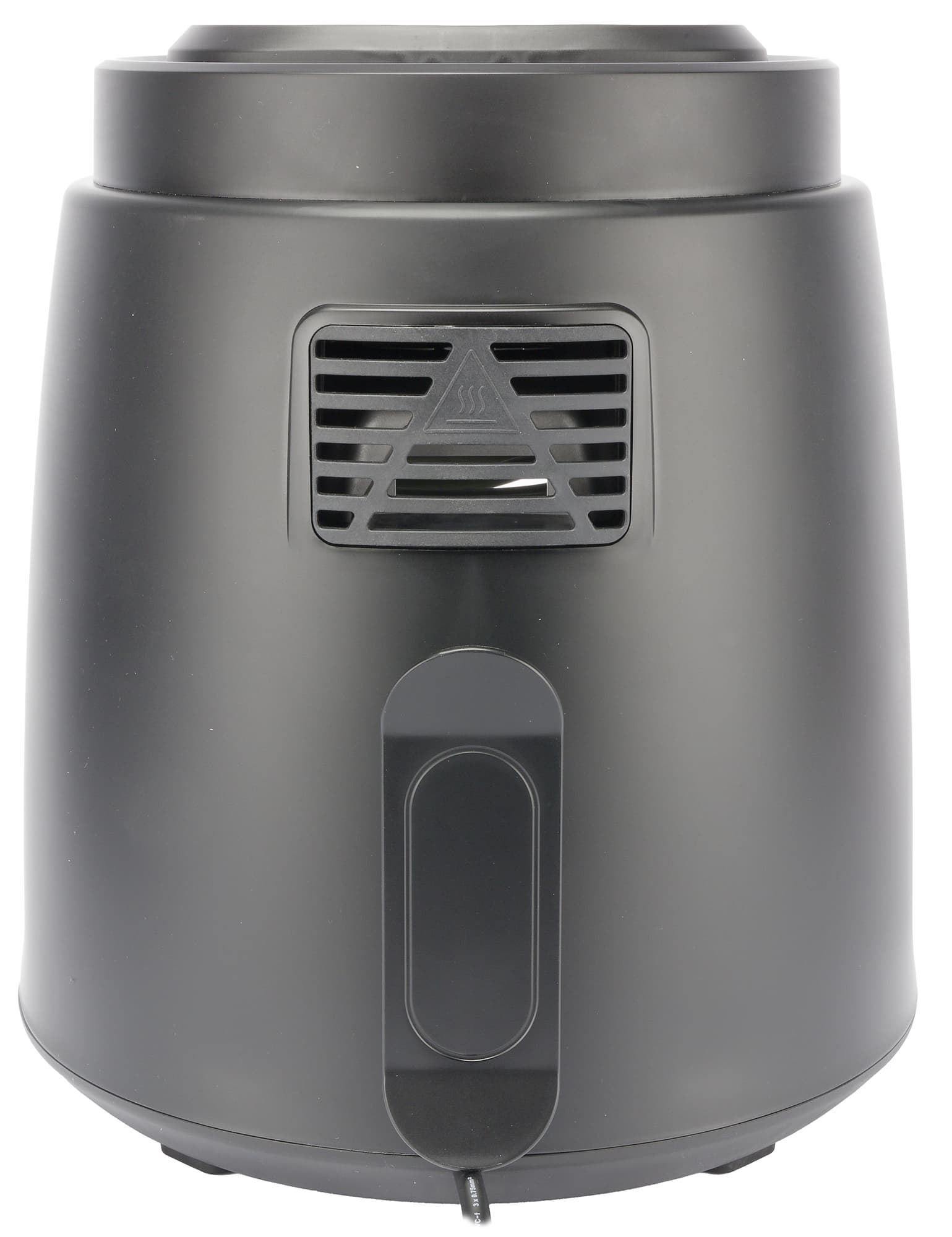 Сзади на приборе мы видим наружную сторону отверстия для выхода горячего воздуха с решеткой. В самом низу из корпуса выходит шнур электропитания.