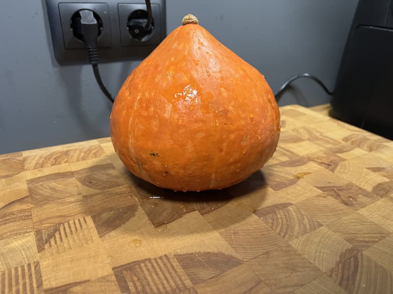 Для начала мы разрезали нашу тыкву на множество долек и очистили ее от семян.