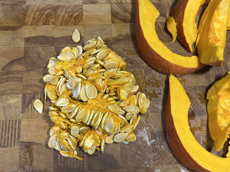 Мы почистили семена и оставили их для украшения супа.