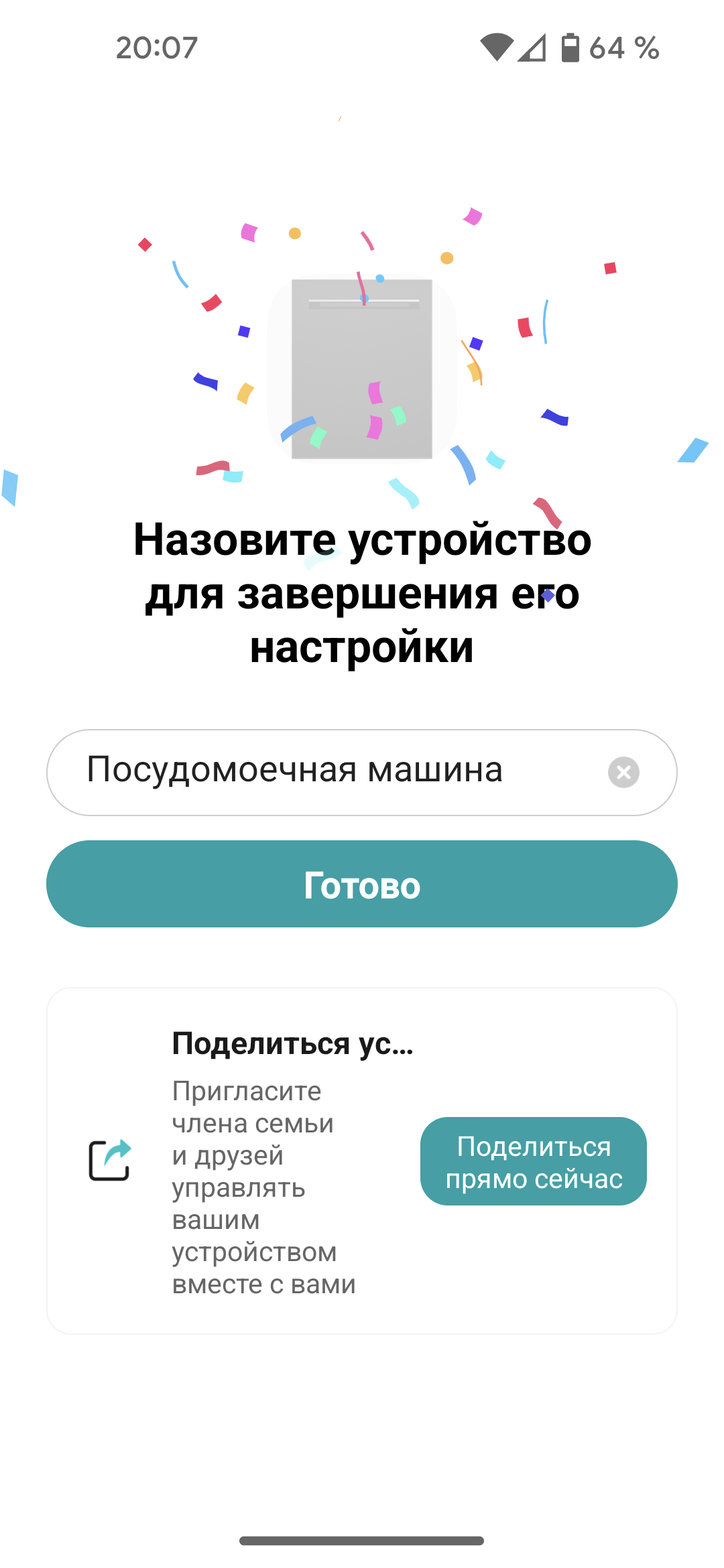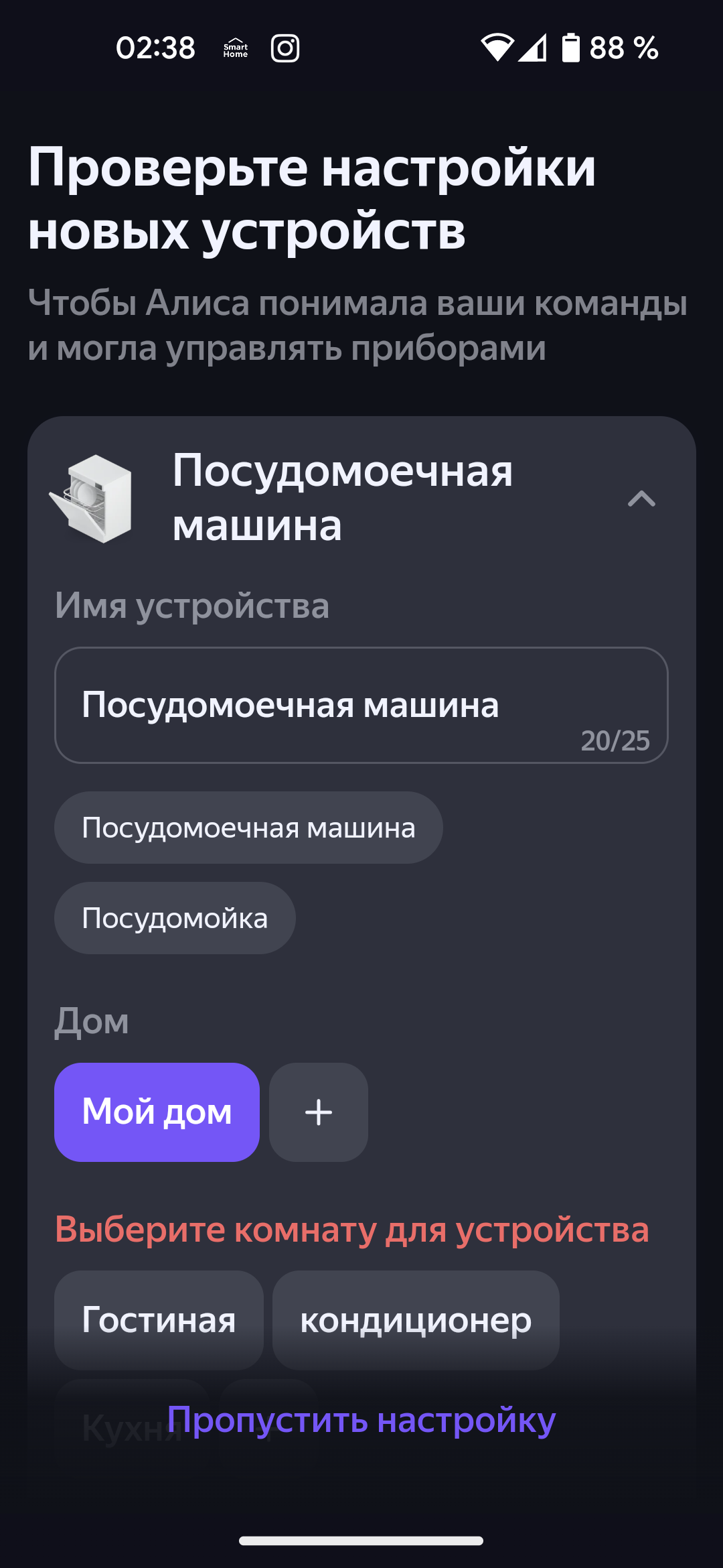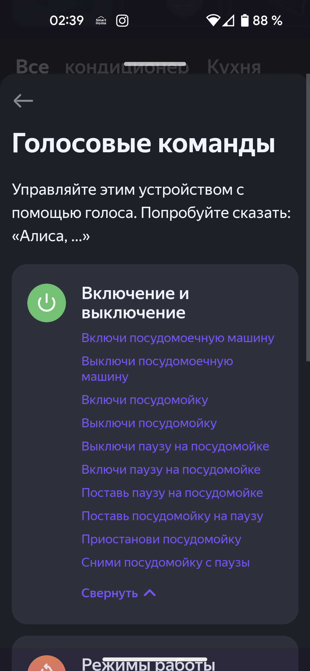 Подключенная посудомойка появляется в списке устройств нашего «Умного дома Яндекса».