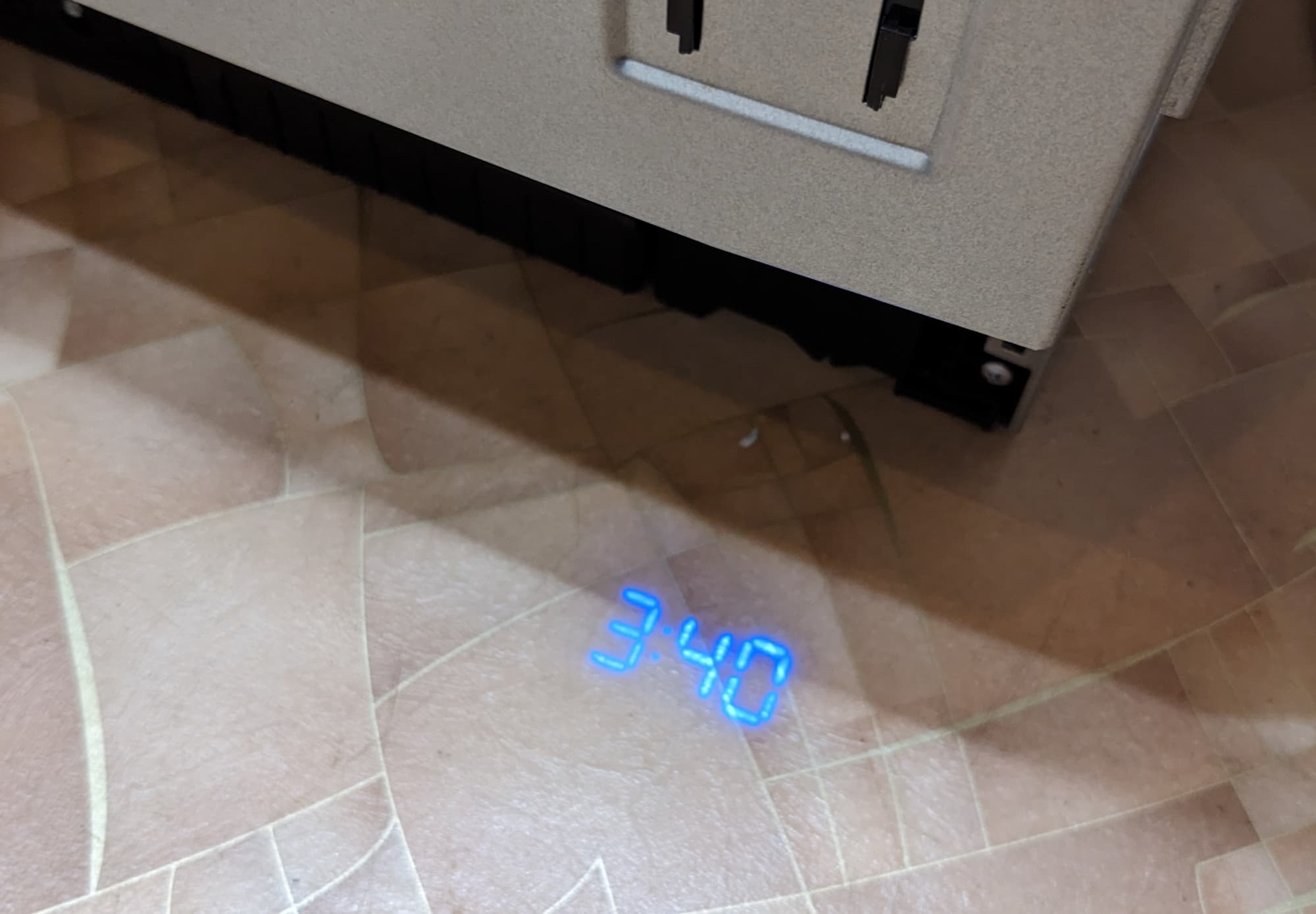 Вместо традиционного «красного луча», извещающего о выполнении программы, Midea MID60S720i проецирует на пол время, оставшееся до конца сценария. Яркие и контрастные голубые цифры выглядят необычно и отлично читаются при любом освещении.