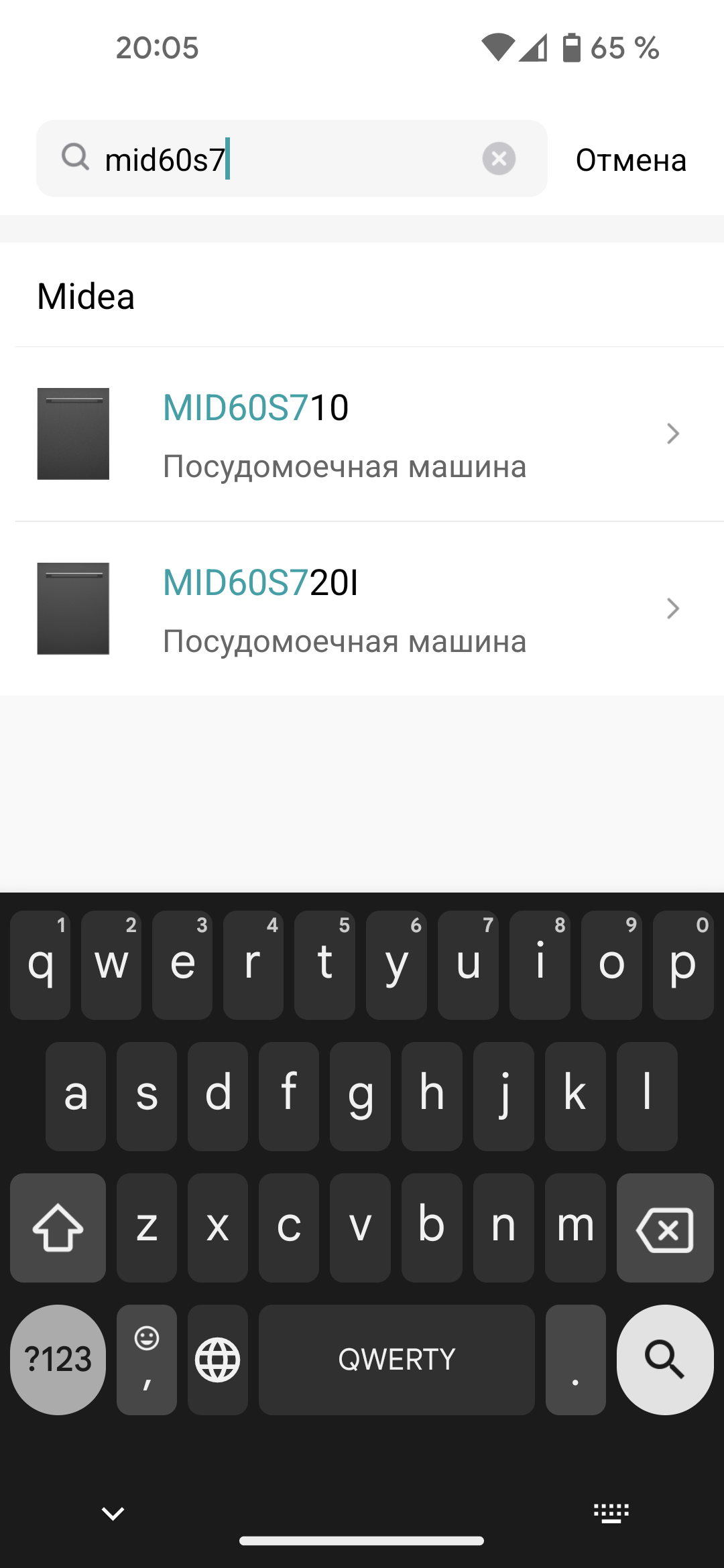 Программа попыталась автоматически обнаружить устройство, но в нашем случае это сделать не получилось. После неудачи нам предложили выбрать подключаемую посудомоечную машину. Список поддерживаемых устройств довольно велик, и для поиска удобнее ввести первые символы названия модели.