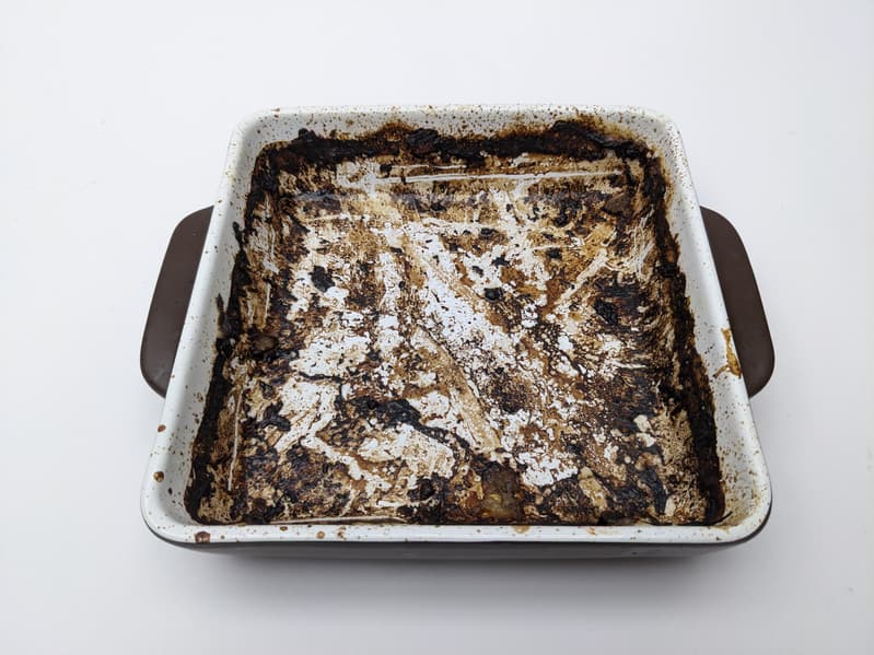 Пригоревшие сок с жиром дают корку, которую вручную не сразу отмоешь. Конечно, и речи не шло о том, чтобы помыть сразу или замочить предварительно.