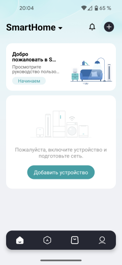 Для управления посудомоечной машиной с помощью мобильного телефона производитель рекомендует приложение SmartHome (ранее известное как MSmartHome) разработчика Aideology. Мы уже рассказывали о нем в обзоре робота-пылесоса Midea M9.