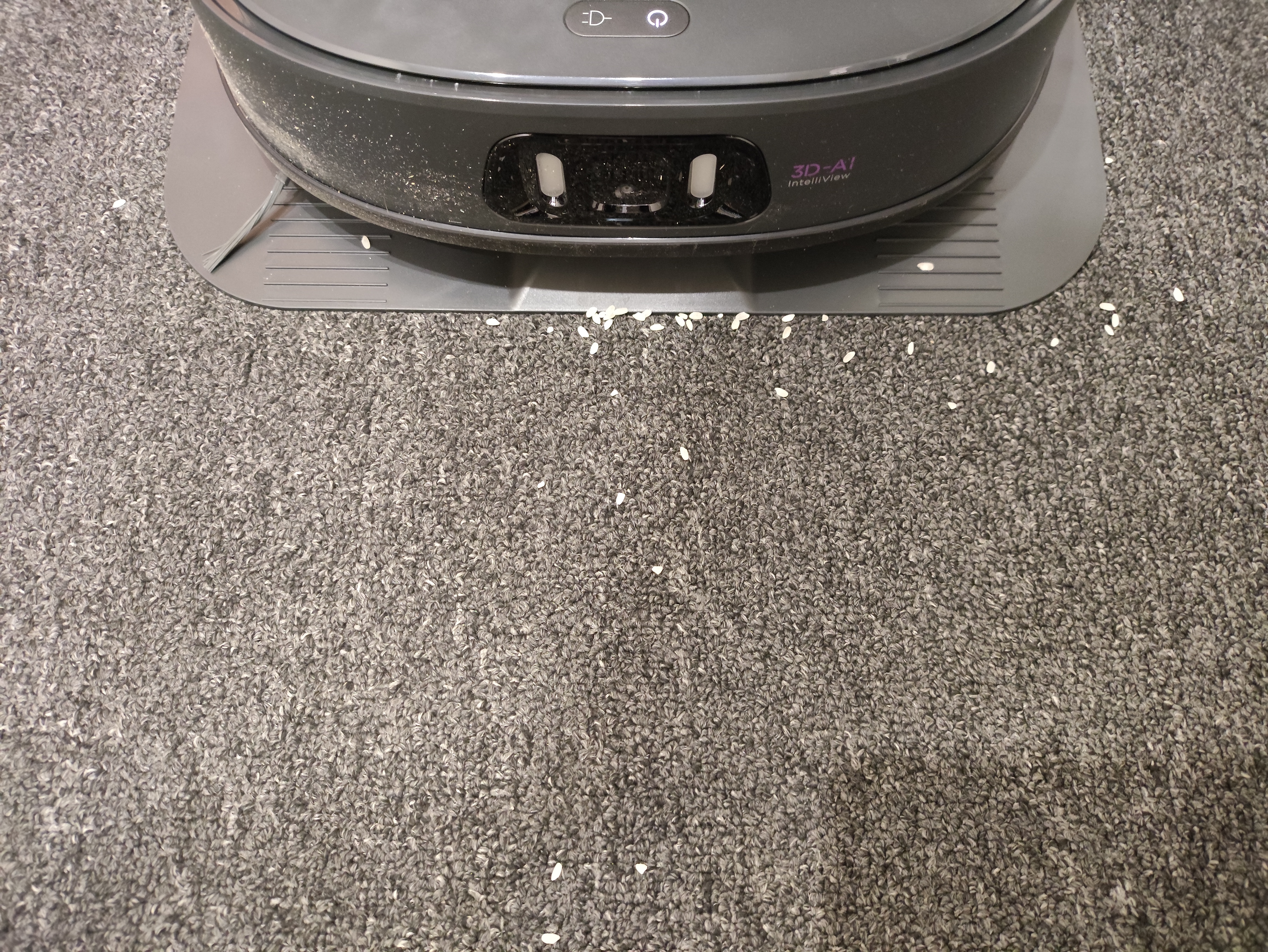 Мы представляем результаты тестирования устройства по нашей методике, подробно описанной в отдельной статье. Перед началом тестов мы позволили пылесосу несколько минут погулять по полигону, чтобы ознакомиться с планом помещения и конфигурацией препятствий, после чего запустили тестовую уборку.