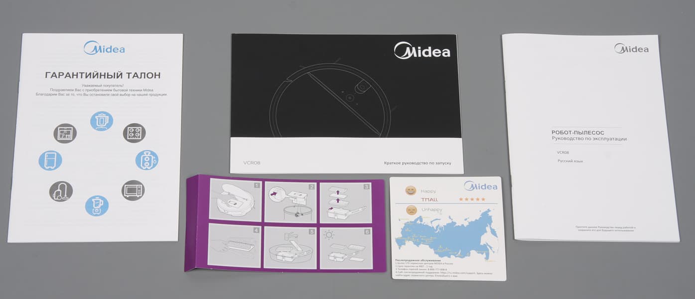 Краткое и подробное руководство пользователя на русском языке. Качество текста хорошее (ошибки есть, но их немного), как и качество полиграфического исполнения. Дополнительно есть листок с этапами очистки пылесборника, гарантийный талон и информационная листовка поддержки от производителя. Руководство можно загрузить с сайта производителя.