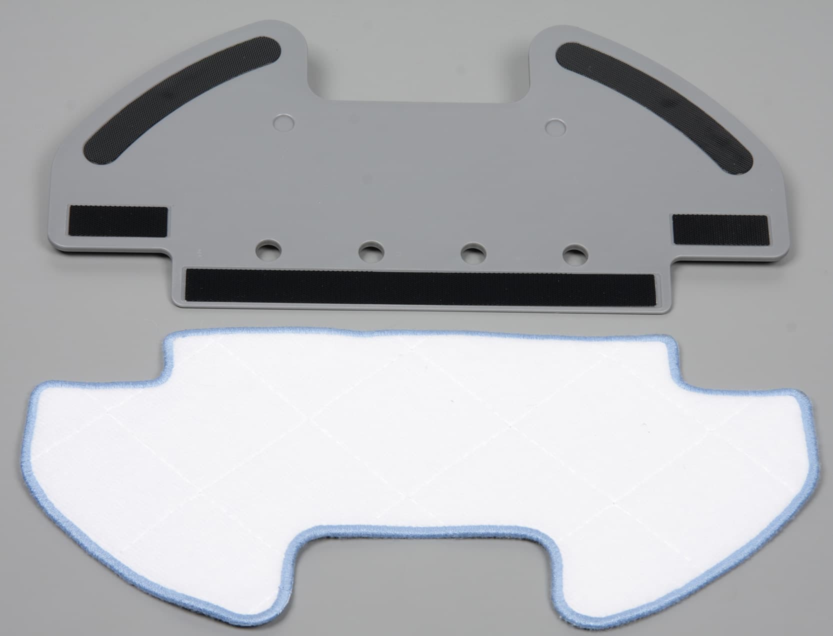 Для влажной очистки гладких полов снизу нужно закрепить входящую в комплект поставки площадку, на которую на липучке прикрепляется махровая салфетка из микроволокна.