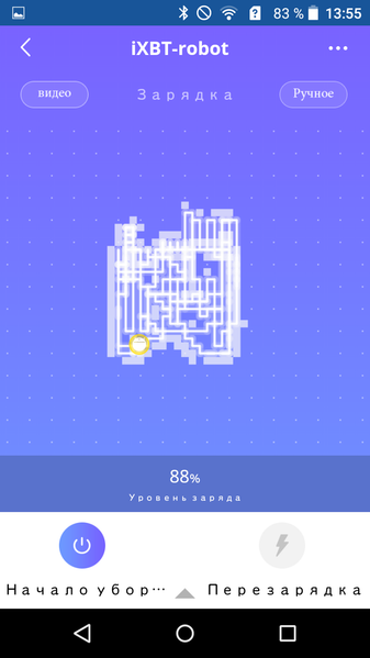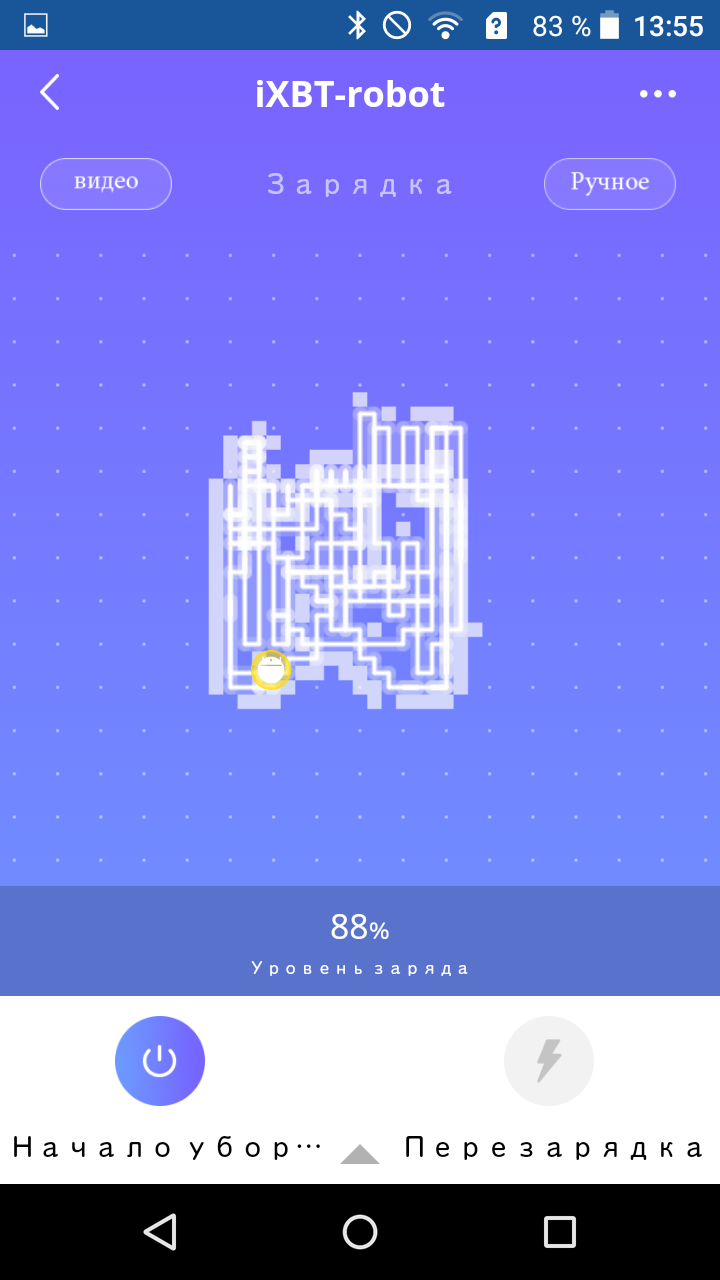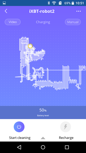 В приложении отображается карта помещения, составленная роботом, и траектории движения робота на ней. Можно контролировать, как робот убирает, и при необходимости приходить ему на помощь и вносить коррективы в расстановку мебели и т. д. с целью повышения качества уборки.
