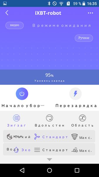 Фирменное приложение, устанавливаемое на смартфоны с Android и iOS (планшеты, по всей видимости, не поддерживаются вовсе) на борту, существенно расширяет функциональность робота. Запустив приложение первый раз, нужно установить связь с роботом, который должен быть в радиусе действия Wi-Fi-сети (поддерживается только 2,4 ГГц). Для установки связи с роботом используется глобальный облачный сервис (необходима регистрация), поэтому доступ к роботу можно получить из любого места, где есть Сеть. Впрочем, после обнаружения подключенного к Сети робота и установки связи с ним доступ к Сети уже не требуется.