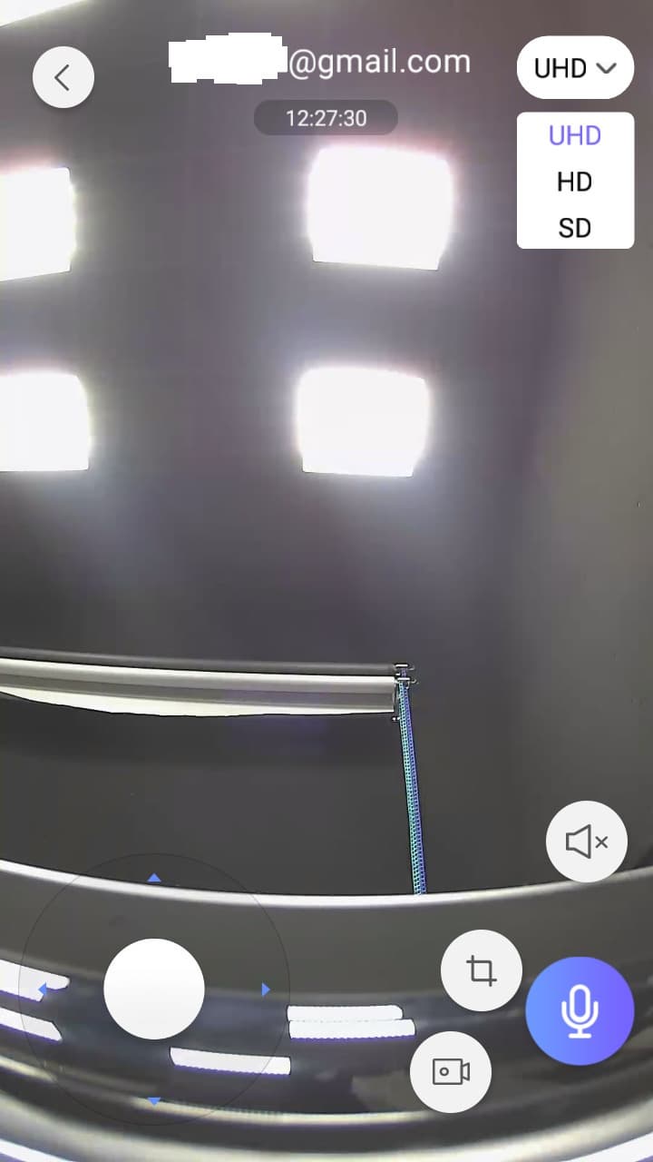 И, наконец, самая интересная функция в указанном ПО, позволяющая задействовать камеру робота. На экран смартфона можно вывести то, что видит камера в данный момент. Кнопками поверх видеоизображения выбирается качество видео, включается/отключается передача звука с камеры, включается передача звука с микрофона смартфона (режим связи полудуплексный — звук передается или с камеры робота на смартфон или с микрофона смартфона на громкоговоритель робота), снимается снимок с экрана, включается запись видео в память смартфона, также можно управлять движением робота (поворот вправо-влево и движение вперед).