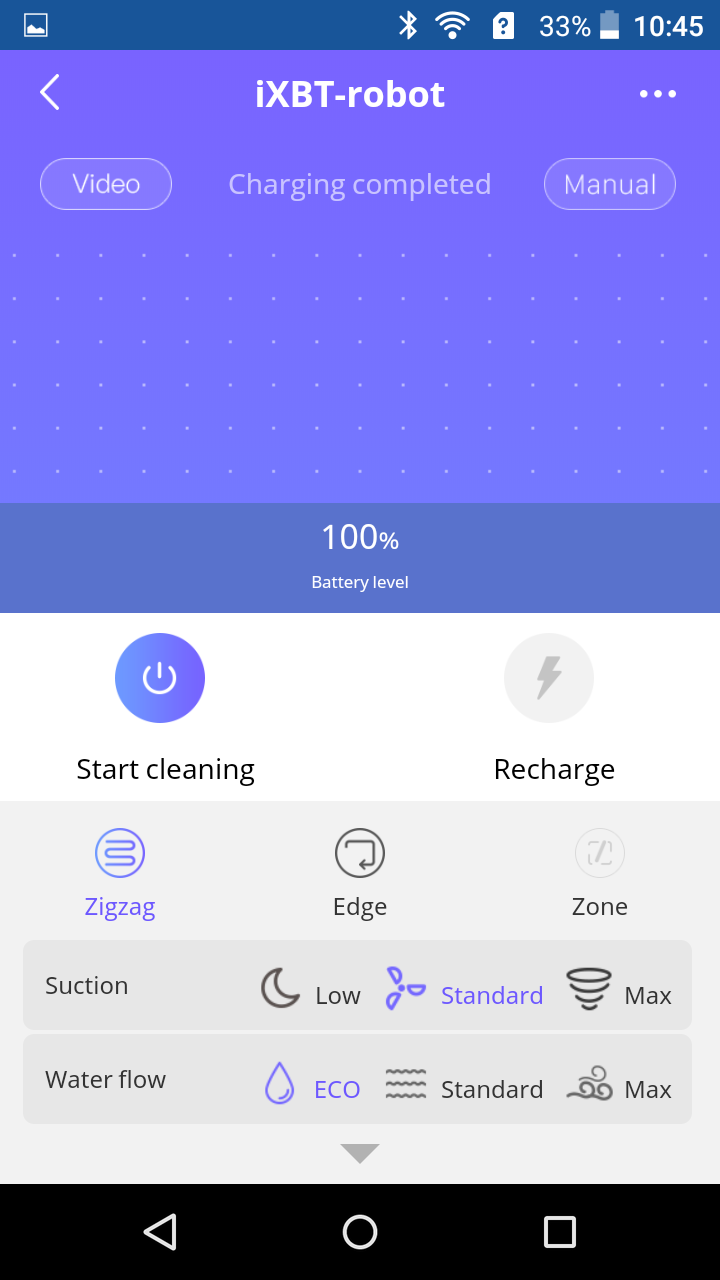 | Режимы очистки | змейкой всей доступной площади, локальный, вдоль препятствий, уборка по расписанию индивидуально на каждый день недели, три уровня мощности всасывания и три уровня степени увлажнения |
