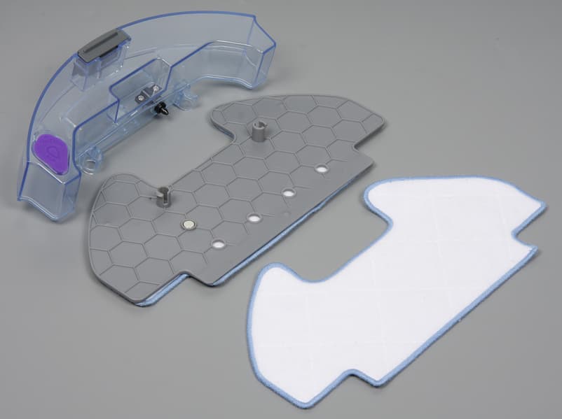 Электронасос, установленный в корпусе робота, дозирует вытекание воды. Наличие площадки для влажной уборки робот определяет с помощью магнитного датчика.