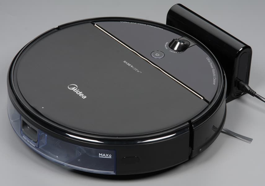 В режиме движения змейкой Midea VCR08 убирает доступную ему площадь помещения и сам возвращается на базу для зарядки аккумулятора. Качество уборки высокое. При необходимости пользователь может вручную направлять робота в нужное место, включать режимы интенсивной очистки локального участка или следования вдоль стен, регулировать мощность вентилятора. Робот умеет выполнять влажную уборку гладких полов одновременно с полноценной сухой уборкой, так как блок для влажной уборки устанавливается вместе с обычным пылесборником. Приложение для смартфона еще больше расширяет функциональность робота: можно удаленно управлять роботом, задавать расписание уборки, видеть карту помещения, которую создает робот, и т. д., а также получать видео со звуком с камеры робота и передавать звук с микрофона смартфона на громкоговоритель робота.