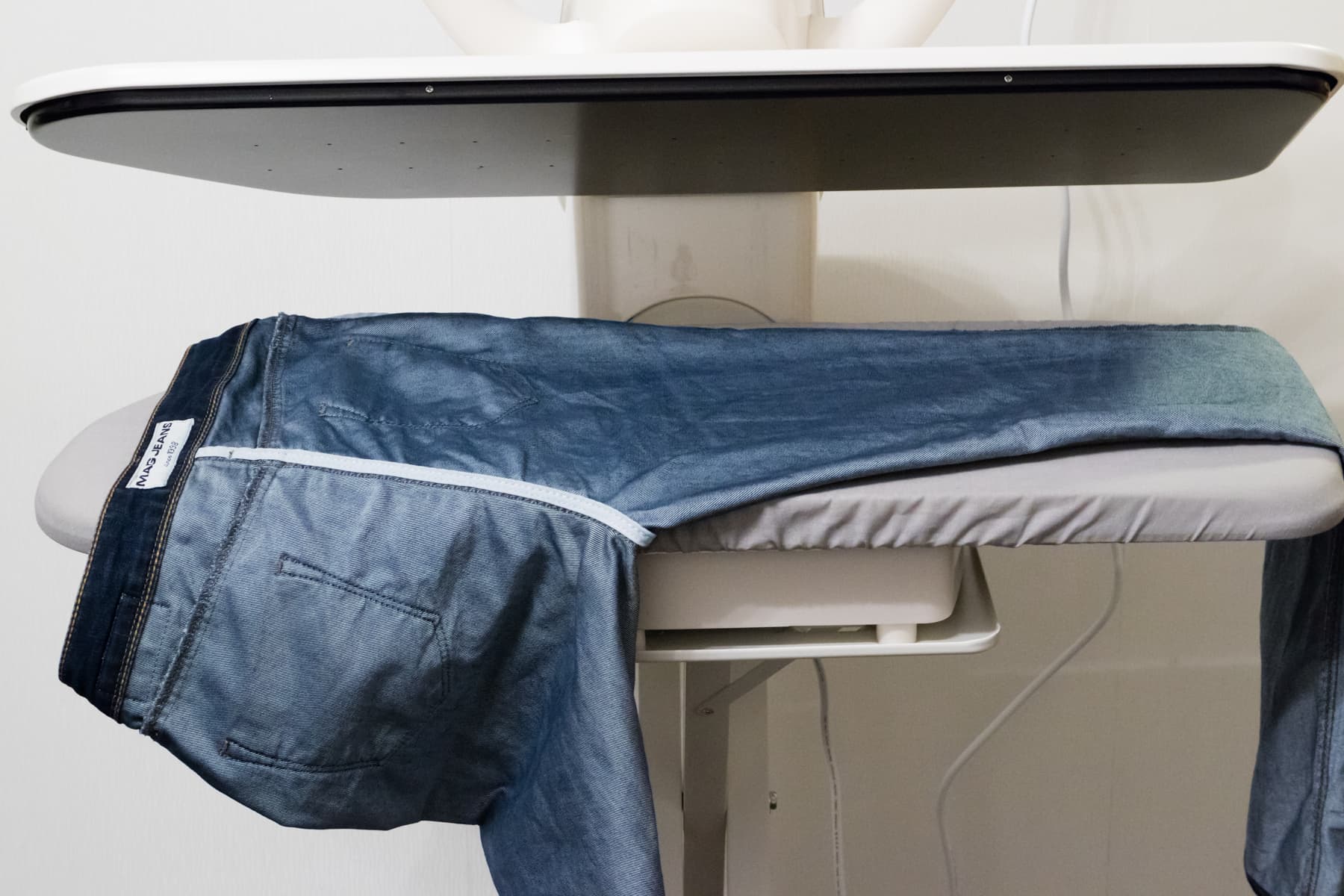 Далее мы перешли к вещам более сложной конструкции. На всякий случай вывернули джинсы наизнанку. Сначала гладили верхнюю половину, затем нижнюю.
