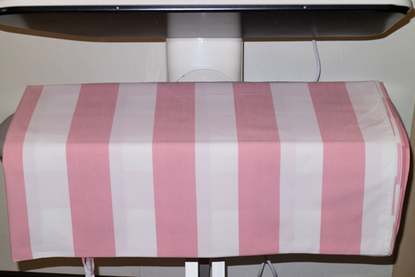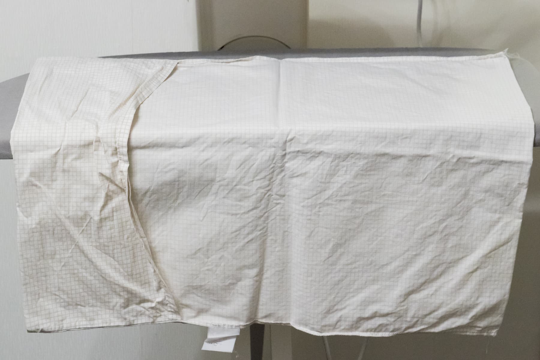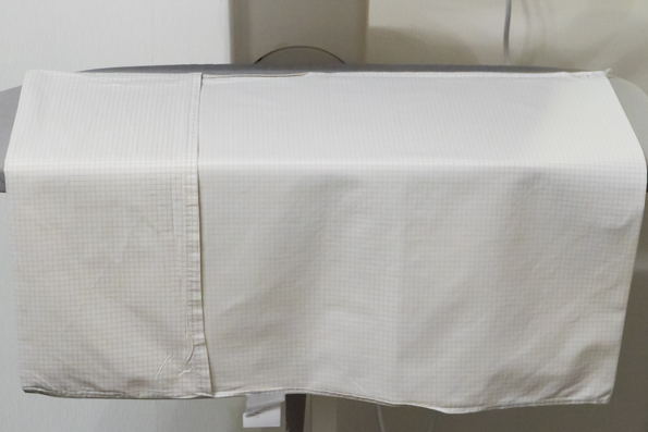 Пододеяльник сложили вдвое, расправили так, чтобы необработанная часть была за гладильной доской, и приступили к работе.