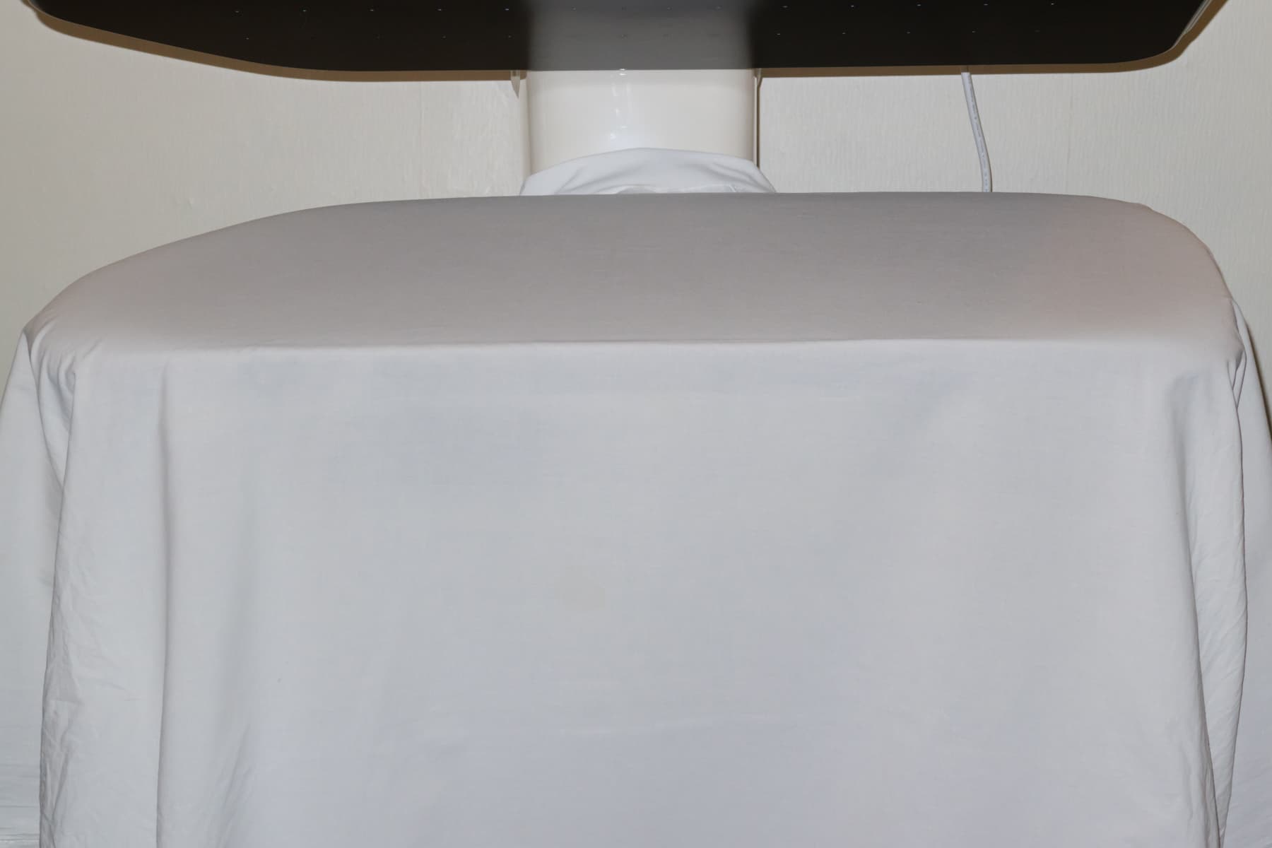 В данном эксперименте мы гладили наволочки, простынь с резинкой и пододеяльник. Обрабатывали в режиме Cotton при двойной подаче пара. Начали с наиболее простого — наволочек размером 40×60 см.