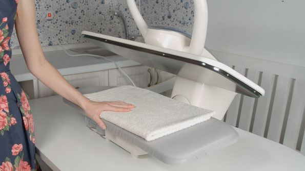 По мере наработки опыта пользоваться гладильным прессом становится все комфортнее. При обработке белья не нужно наклоняться, не нагружаются руки, ноги и спина.
