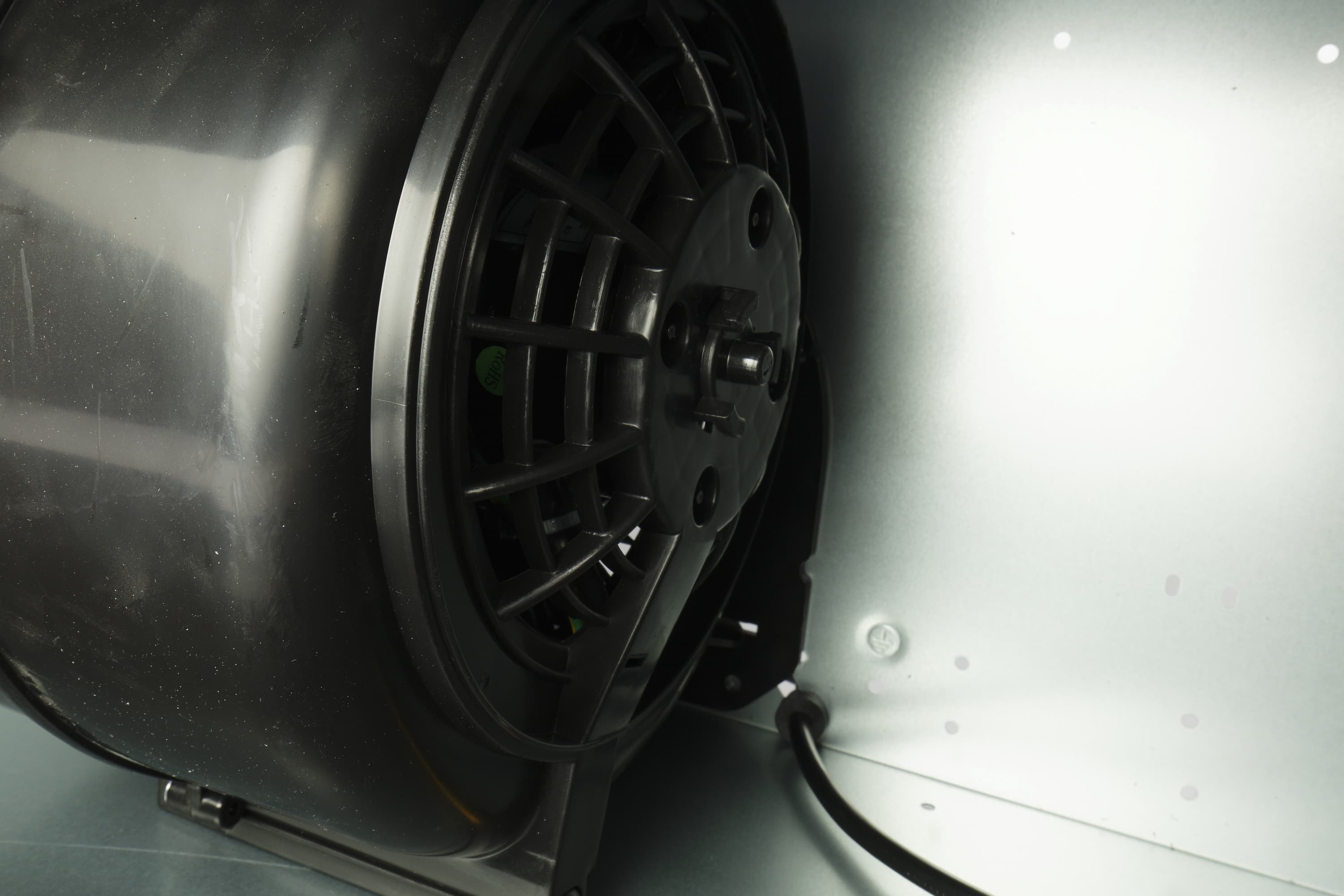 Выходное отверстие прибора диаметром 150 мм оборудовано пазами для установки лепестков невозвратного клапана (они есть в комплекте). Их надо установить, если устройство подключается к вытяжной вентиляции. Рядом с выходным отверстием на верхней панели крепится электрический шнур с евровилкой.