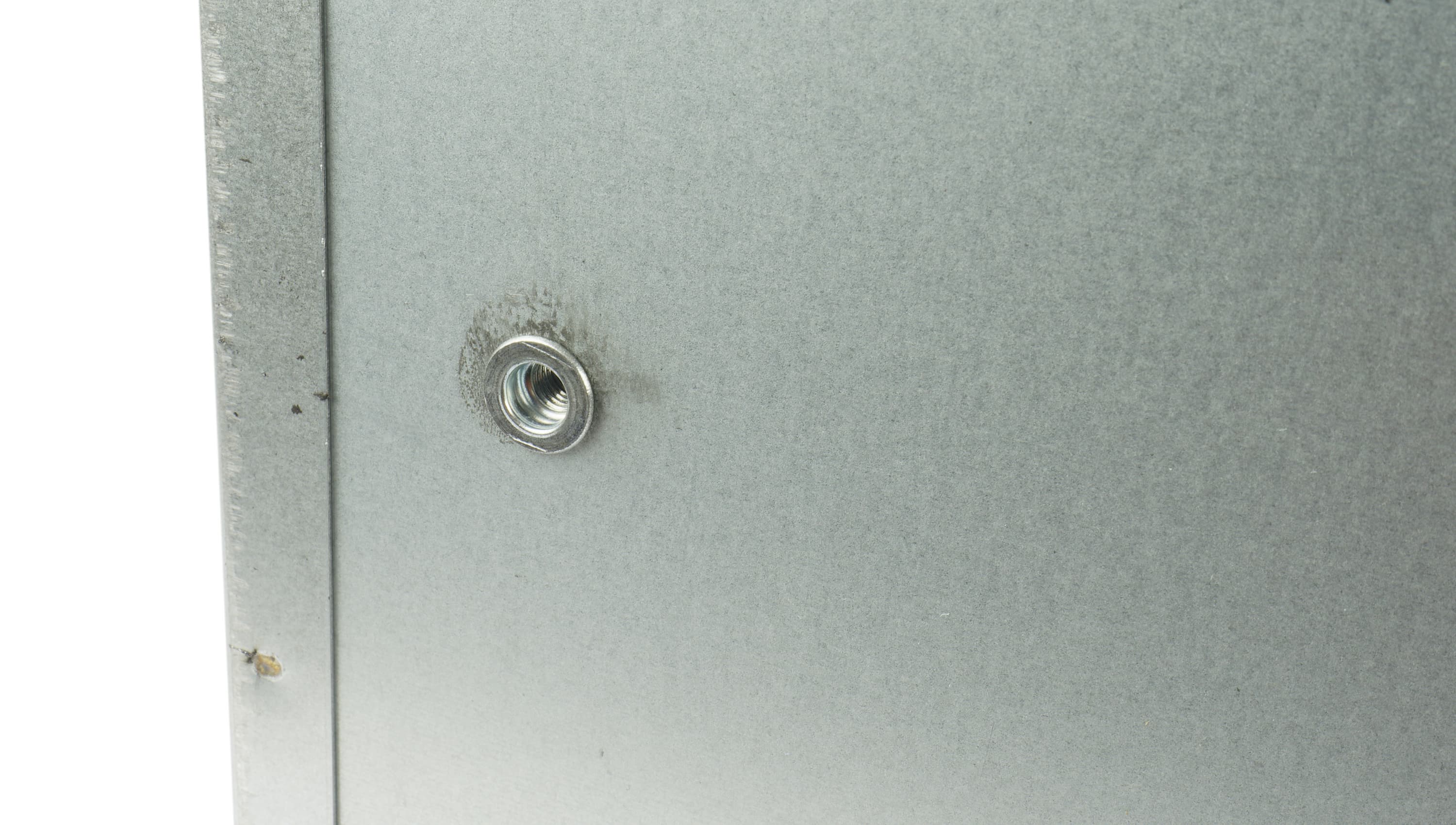 Для монтажа в кухонный гарнитур предназначены четыре шайбы, запрессованные в верхнюю панель. В них вкручиваются винты, входящие в комплект устройства.