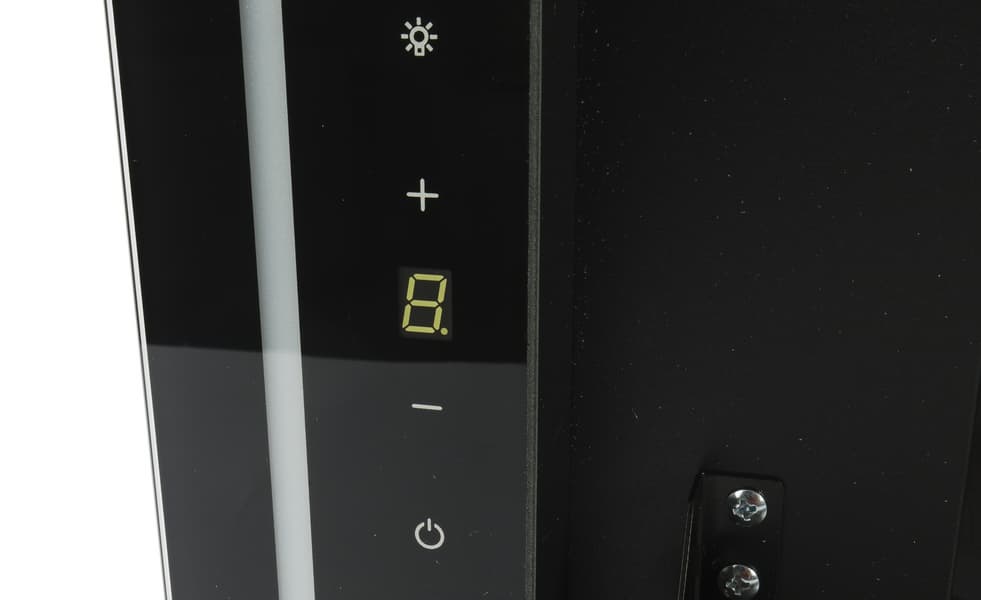 Панель управления состоит из четырех сенсорных кнопок, подсвечиваемых белыми светодиодами, и цифрового индикатора белого цвета.