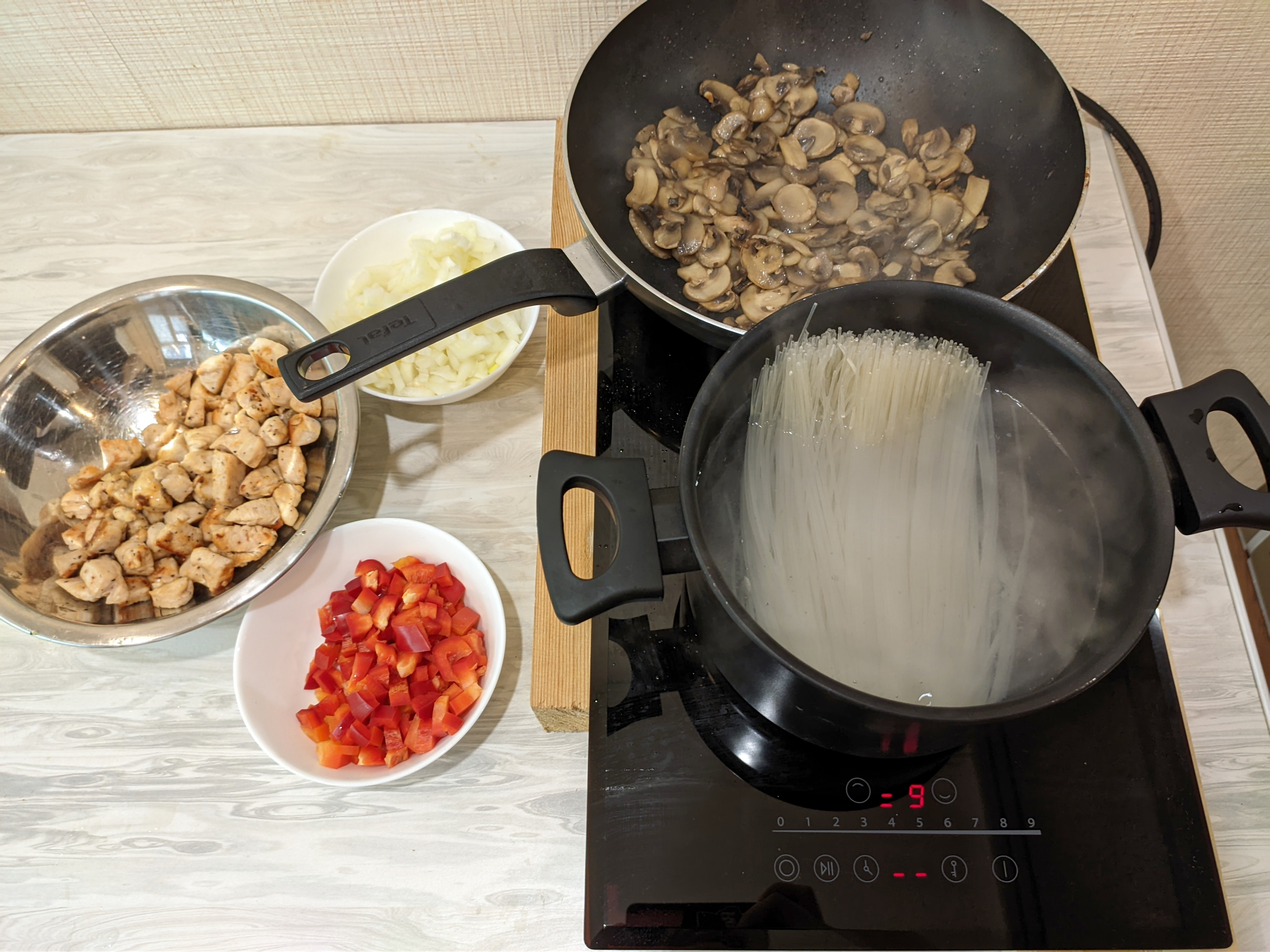 На второй рабочей зоне тем временем можно отварить лапшу.