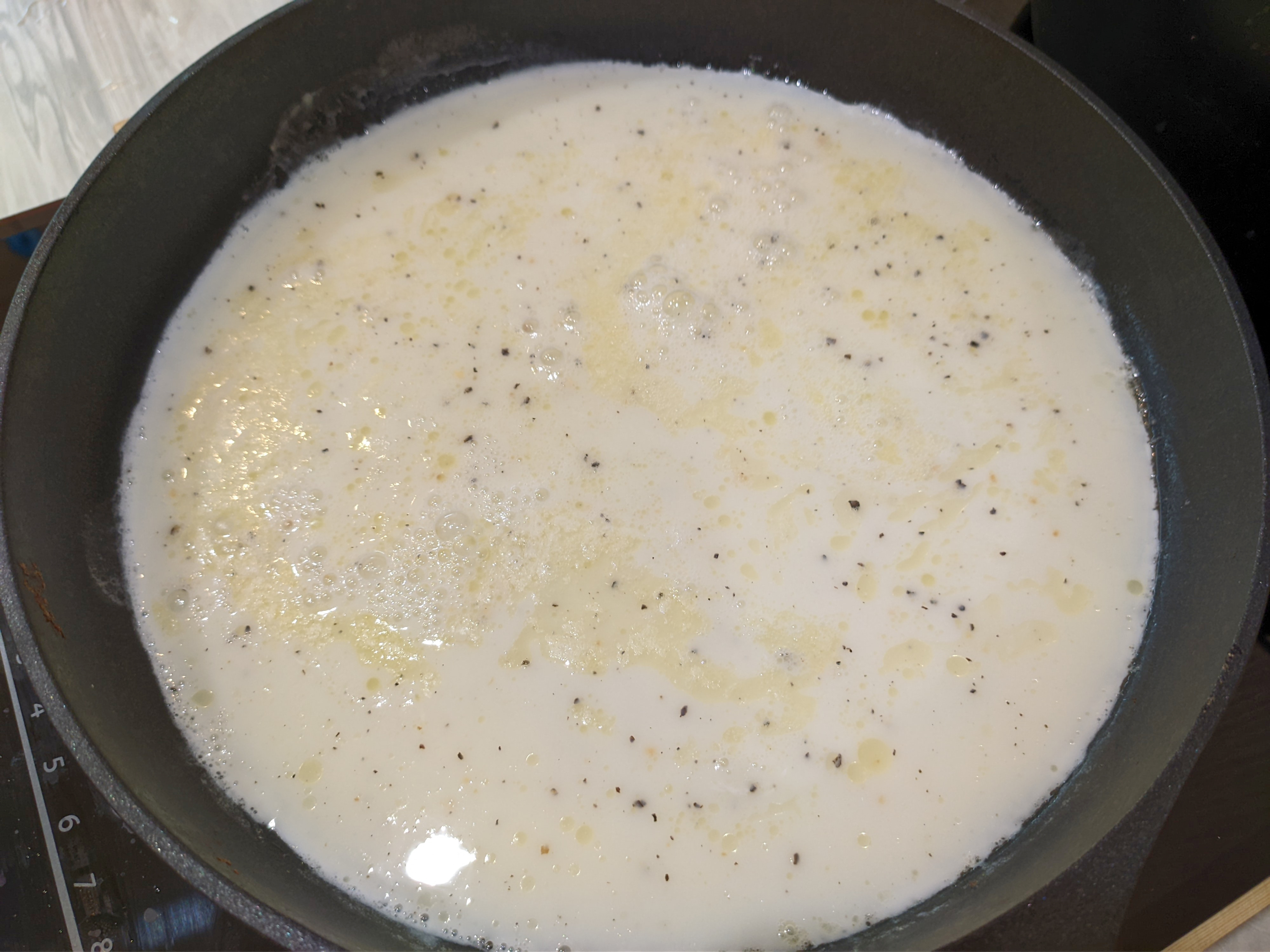 В процессе жарки обнаруживаем, что даже относительно небольшое смещение сковороды относительно центра области нагрева приводит к тому, что одна половина сковороды начинает греться заметно сильнее. На фото это видно по степени румяности корочки.