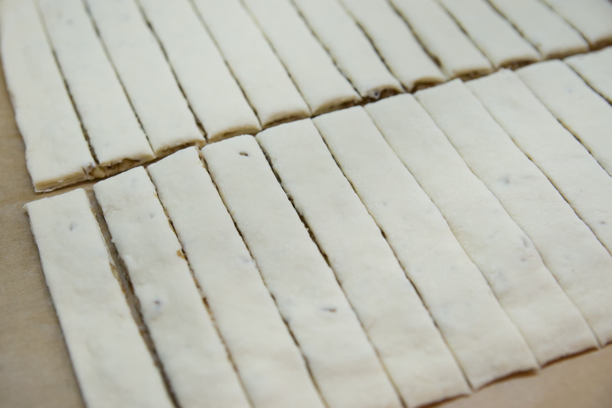 тесто: мука — 250 г, разрыхлитель — 1 ч. л., сливочное масло 82,5% — 90 г, сахар — 40 г, 2 яичных желтка, щепотка соли