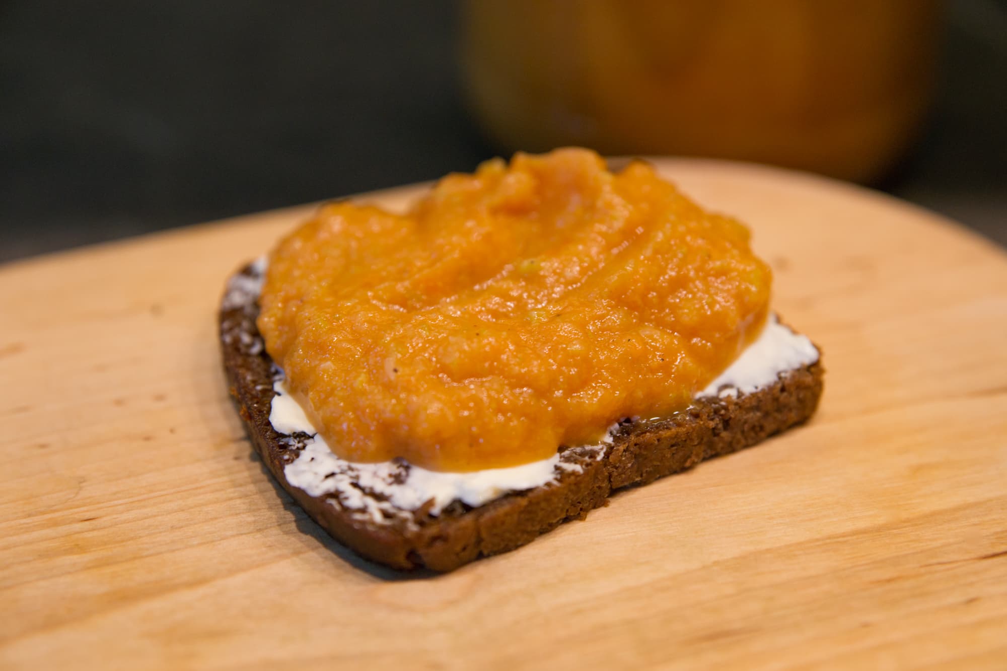 После остывания поместили рукав в холодильник, через некоторое время извлекли овощи, слили лишнюю жидкость и измельчили до состояния икры блендером.