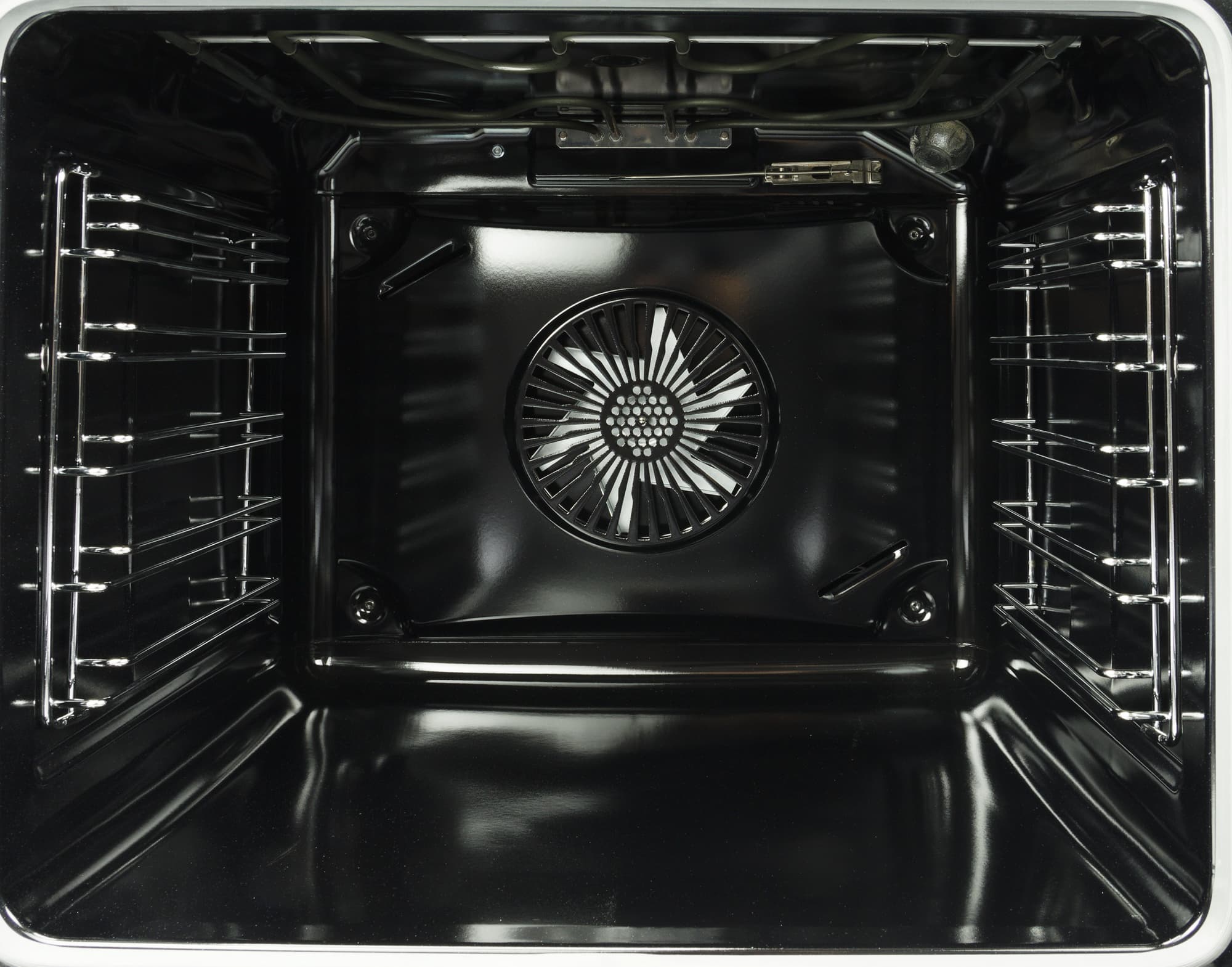 При легких загрязнениях внутреннюю камеру можно очищать тем же способом, а при более стойких — следует обработать поверхность паром. Для этого на нижний уровень следует установить противень с водой, запустить духовку на 20 минут в режиме Нижний нагрев на 100 градусов и закрыть дверцу. После остывания внутренняя поверхность очищается при помощи мягкой ткани или губки с моющим средством, а затем вытирается насухо. Использование жестких царапающих мочалок, как и химически агрессивных составов запрещено.
