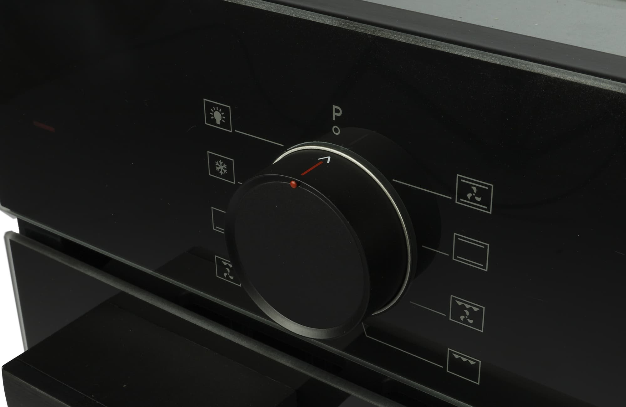 Внешняя панель полностью выполнена из черного глянцевого стекла. Смотровое окошко дверцы слегка затемнено.