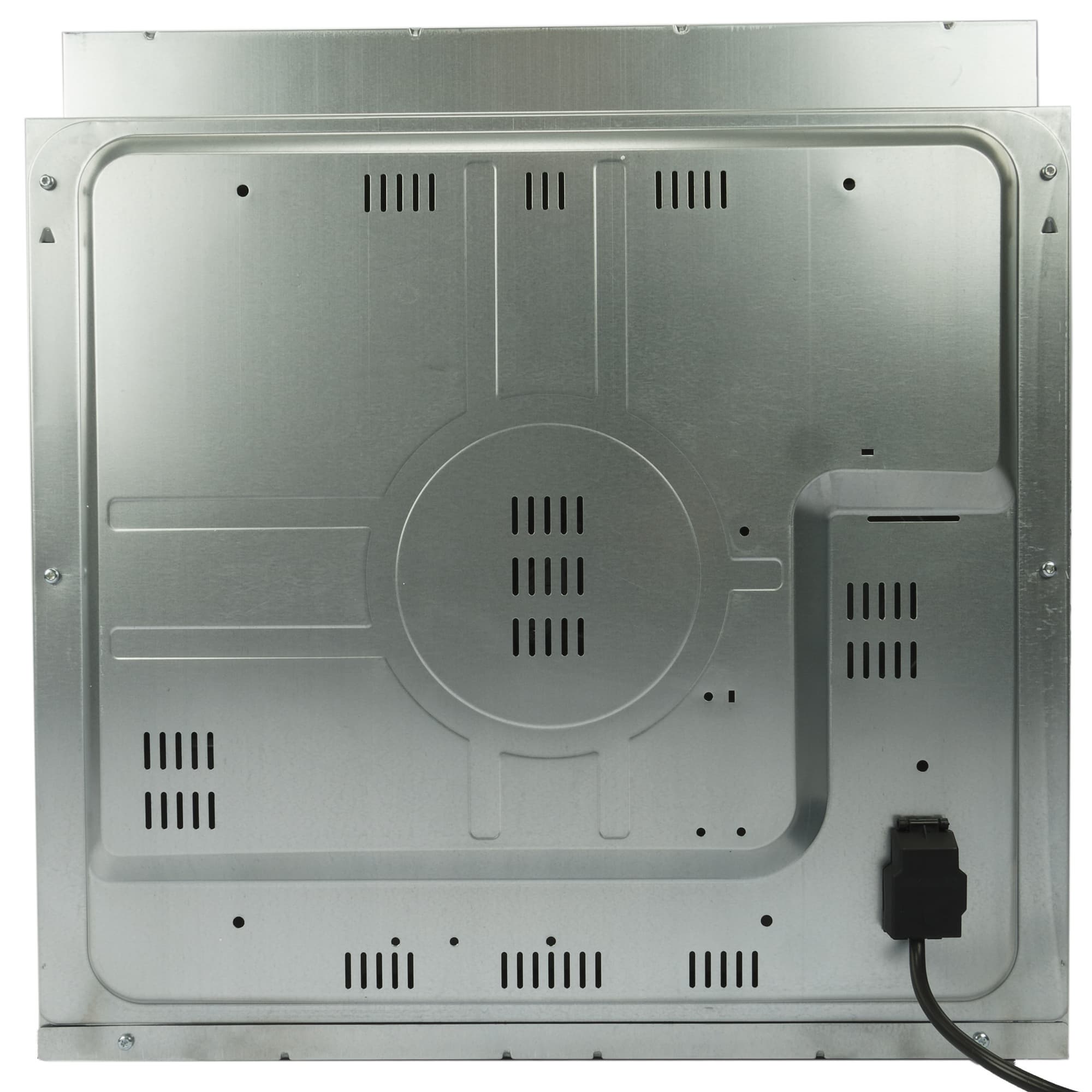 На задней стенке, кроме вентиляционных отверстий, внизу — место крепления шнура электропитания с вилкой.