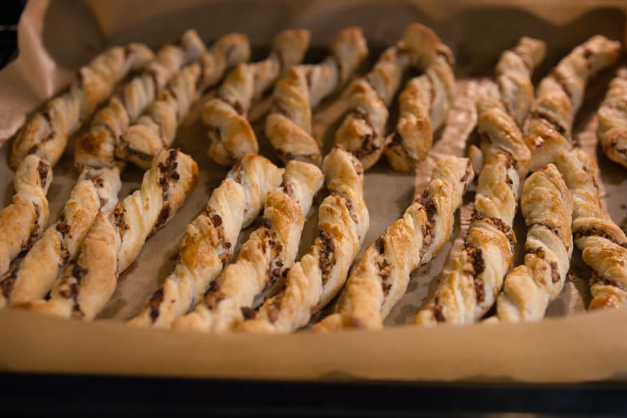 Еще 10 минут — и всё было готово. Хрустящие и вкусные, одинаково румяные и равномерно пропеченные слойки — идеальный результат.