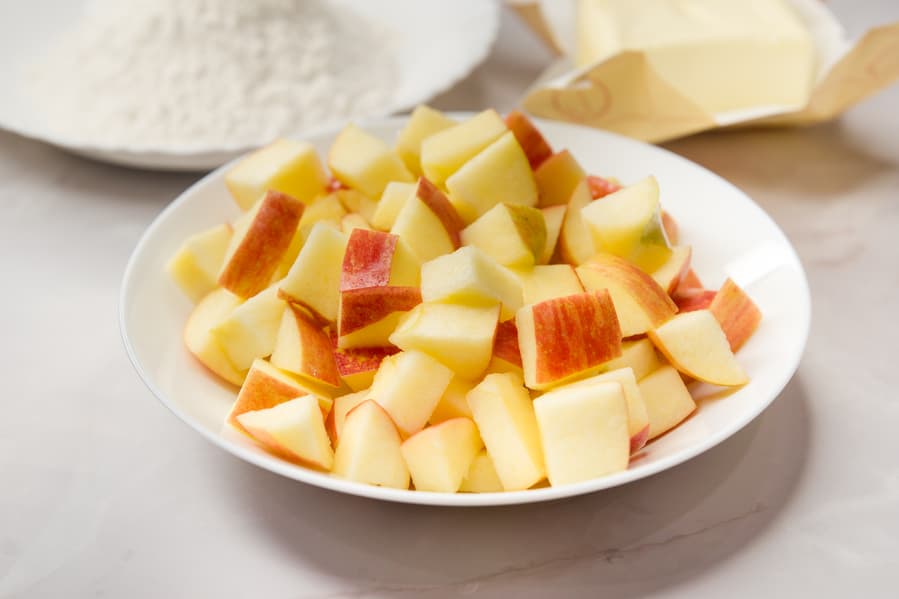 начинка: яблоки — 500 г, сахар — 40 г, сок лимона — 4-5 ст. л., щепотка корицы