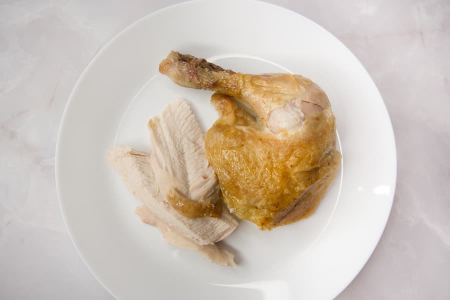 До полной готовности курица запекалась 1 час 20 минут. Тушка вобрала в себя ровно то количество соли, которое было необходимо, внутри получилась сочной, а снаружи покрылась слегка подрумяненной корочкой.