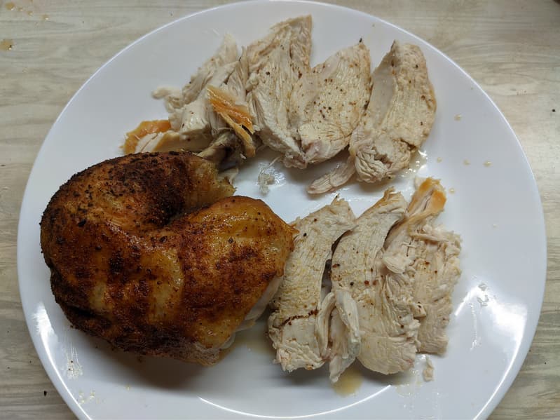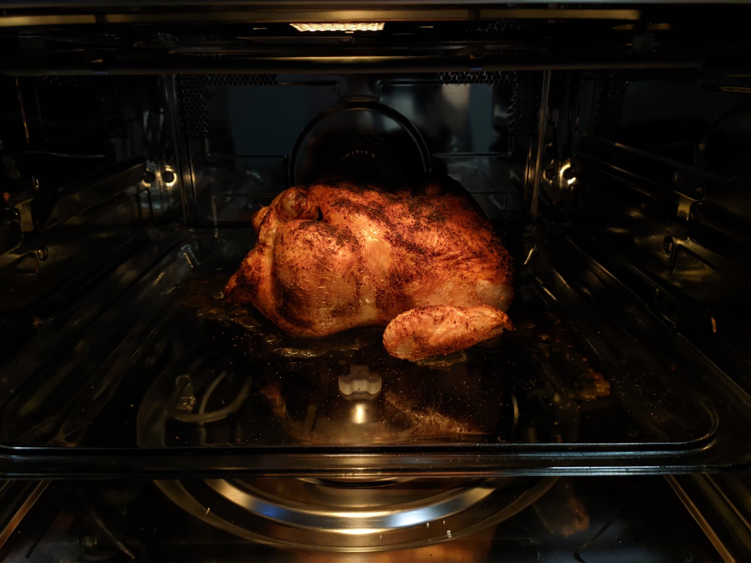 За это время курица полностью приготовилась, недожаренных или пережаренных участков обнаружено не было.
