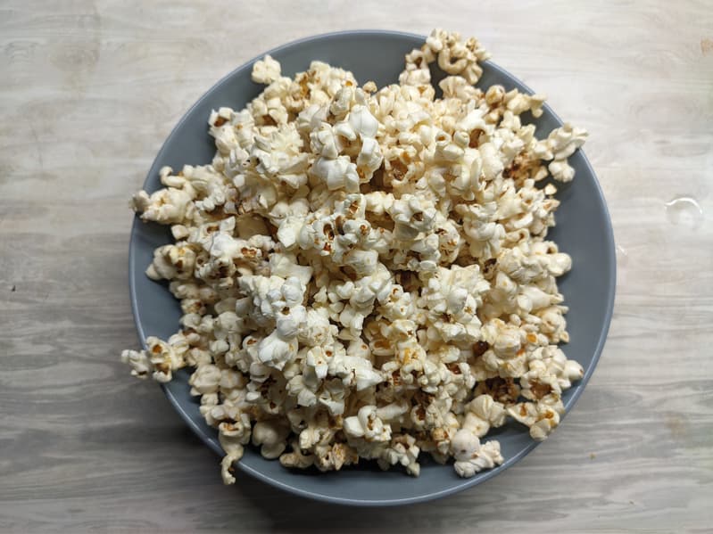 Признаться, на этом этапе мы начали подозревать, что нам попался плохой попкорн. Взяв второй пакет из той же партии, мы поместили его в другую микроволновку, установили режим мощности 600 Вт и обнаружили, что с попкорном всё в порядке. Он начал взрываться через 2 минуты, стрелял очередями через 3, перестал хлопать через 3,5 — всё как положено.
