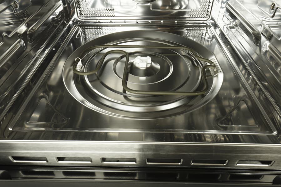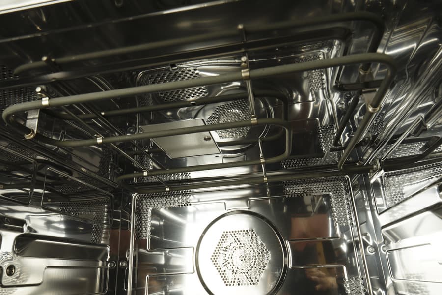 Сверху и снизу располагаются тэны гриля, а по центру задней стенки — вентилятор конвекции.