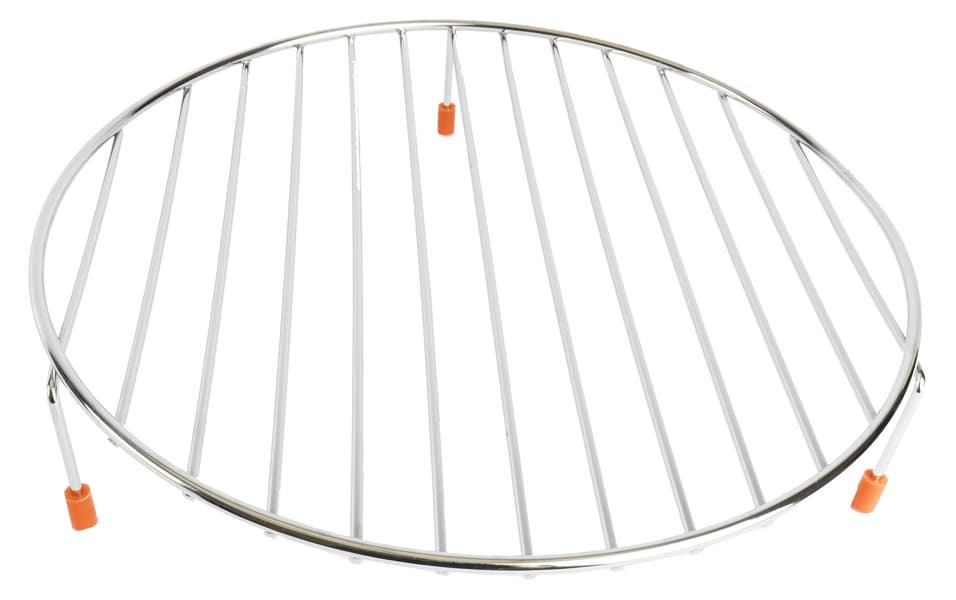 Теперь взглянем на комплектацию. Что производитель положил в коробку помимо самой духовки? Мы обнаружили металлическую подставку-решетку для гриля (диаметр — 29,5 см, высота — 6 см). Такая подставка — стандарт для обычных микроволновок.