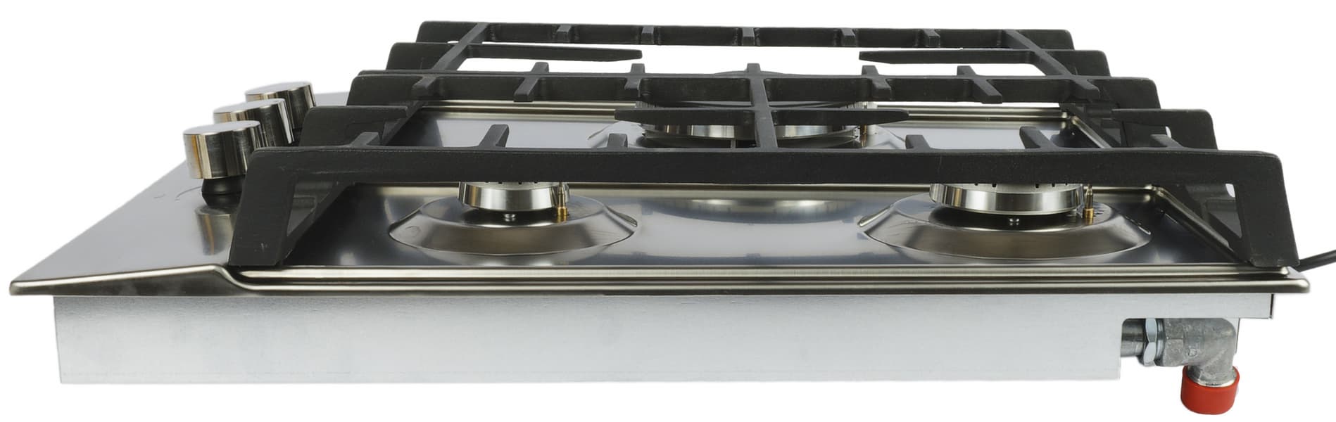Модель можно подключать как к магистральному газу, так и к баллону. Газ-контроль и электроподжиг работают корректно. Пламя всех трех горелок стабильно и имеет достаточный диапазон регулировки, позволяющий и быстро обжаривать, и неспешно варить.