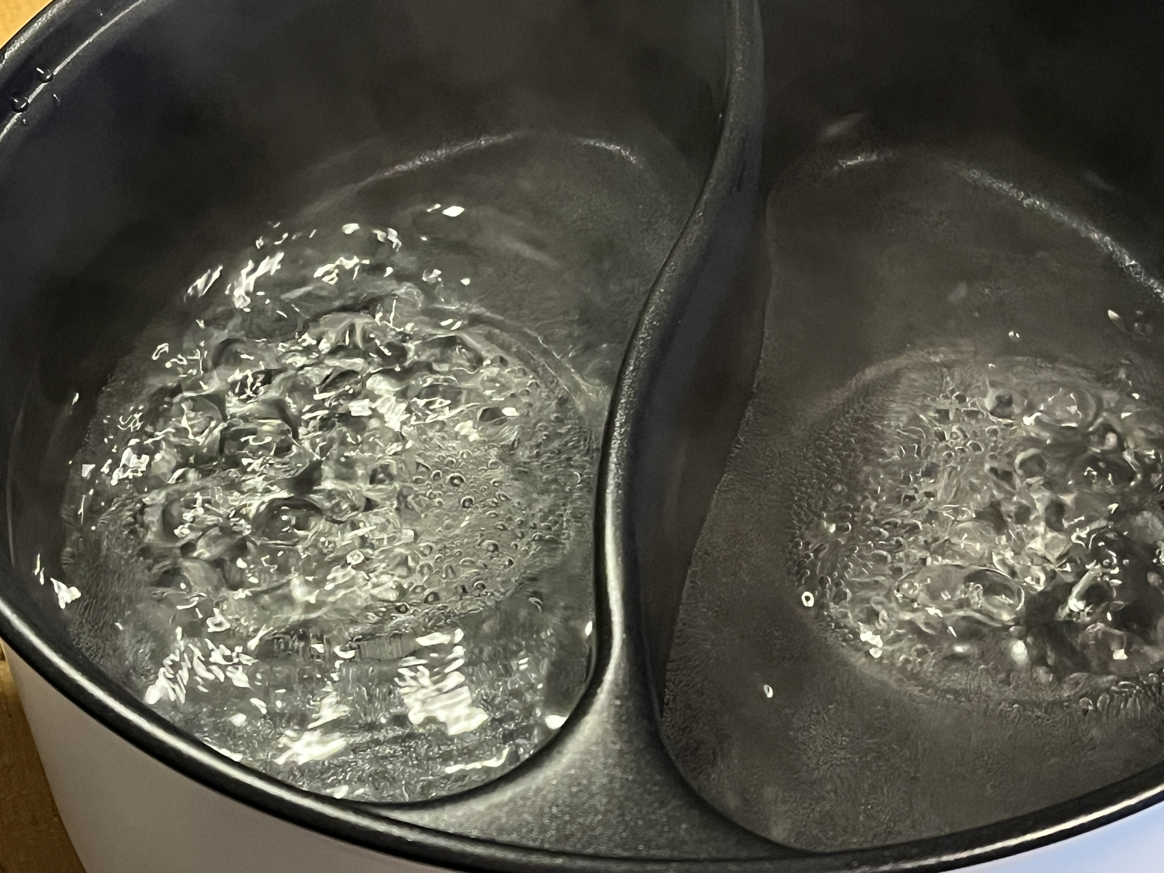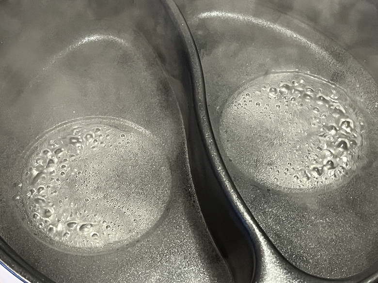 Чтобы увидеть очертания нагревательных элементов, мы довели до кипения небольшое количество воды.