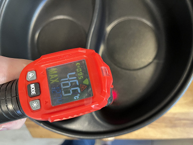При измерении температуры по краям нагретой на максимальном режиме чаши мы также увидели совершенно разные значения: